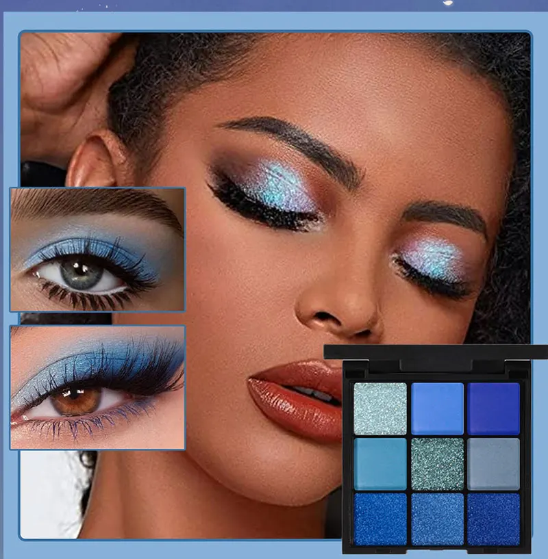 9-color Blue Eyeshadow Palette, Super Color Rendering, Long-lasting, Easy to Mix And Match, High-quality Pigments, Matte,Glitter