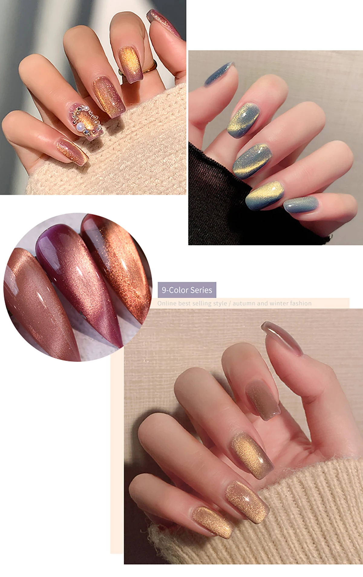 9 Color Golden Cat Eye Nail Oil Glue Flash White Gradient Nail Glue Super Bright Flash All-match Nail Decoration