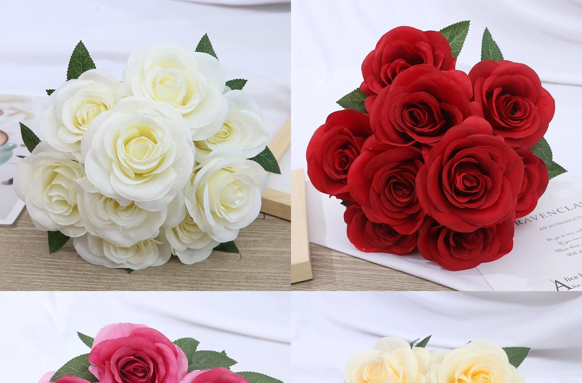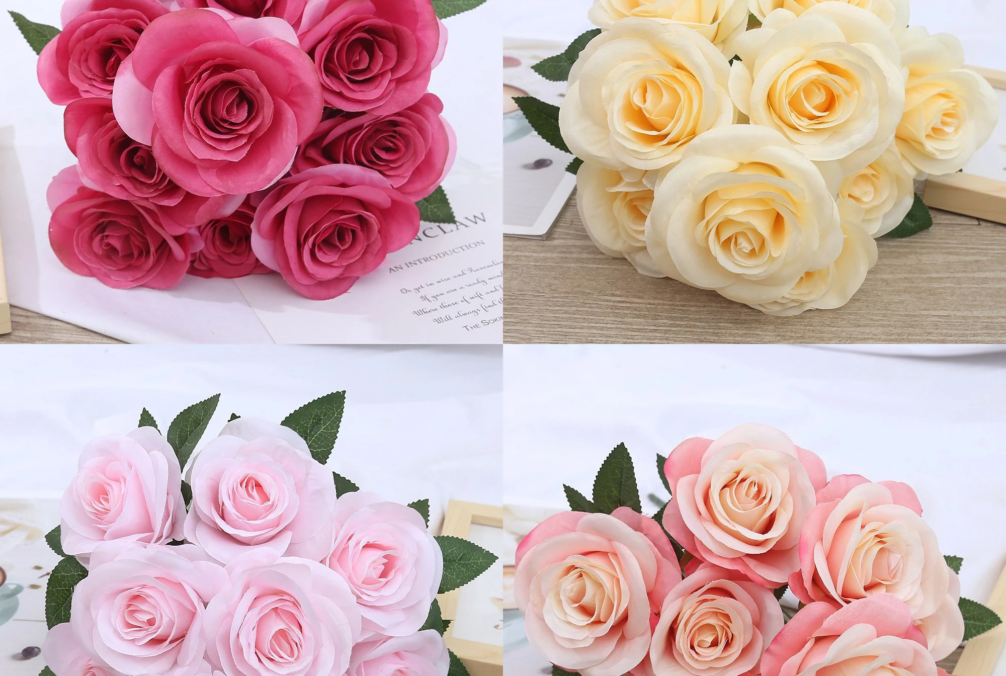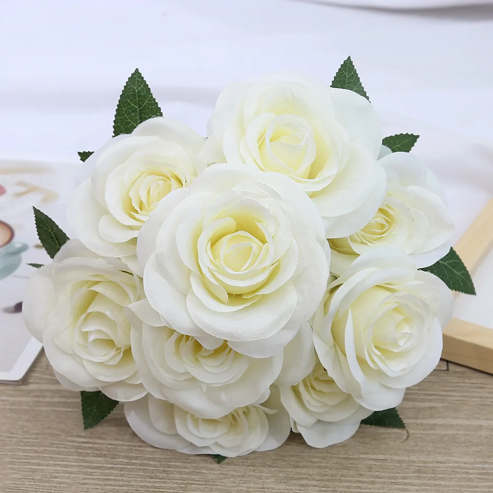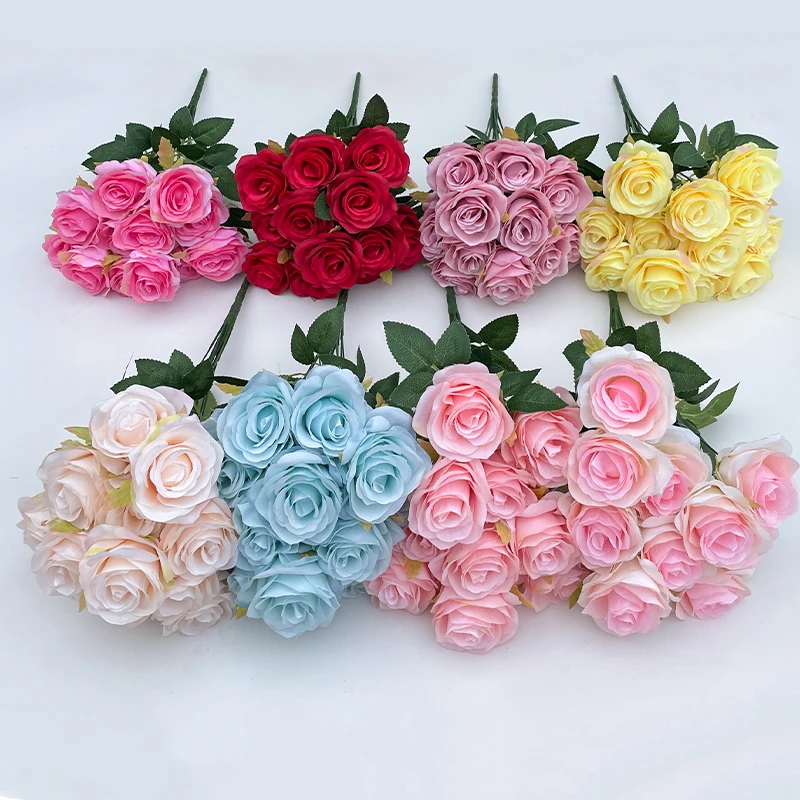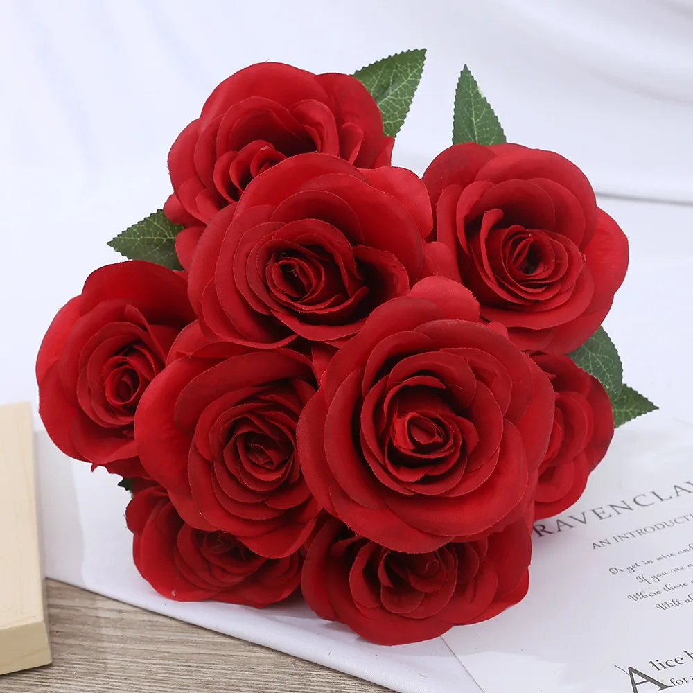 1 review for 9-head Rose Bouquet Artificial Flowers Silk Roses Bride Bouquet Wedding Home Decoration Accessories for Vase Plants Arrangement