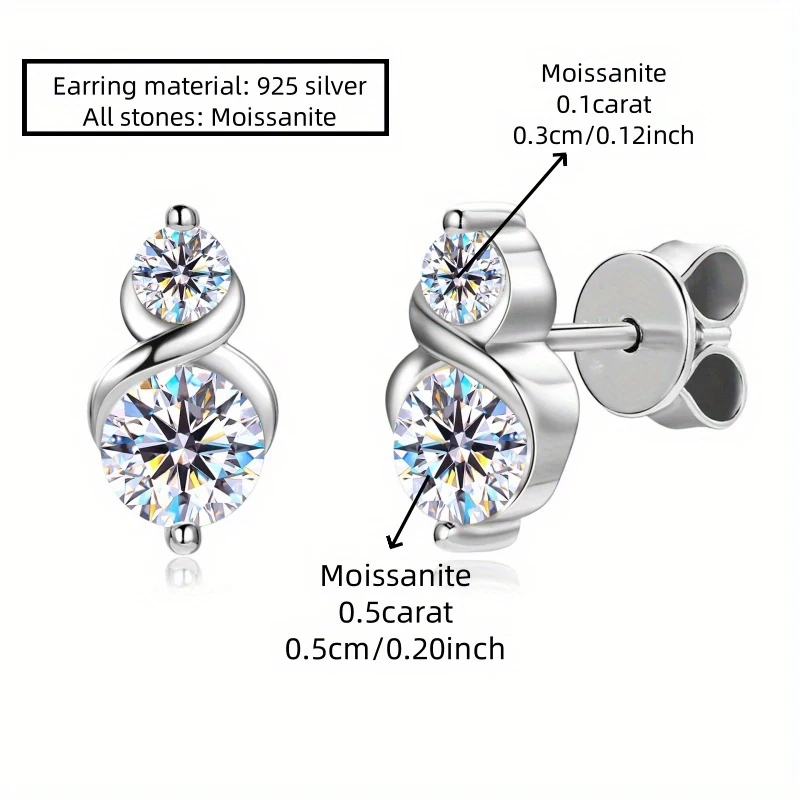 925 silver 0.6 carat*2 round moissanite classic retro elegant fashion infinity symbol stylish high quality earrings