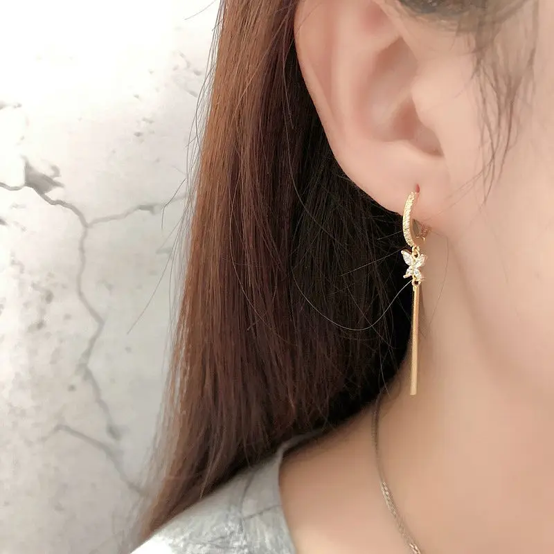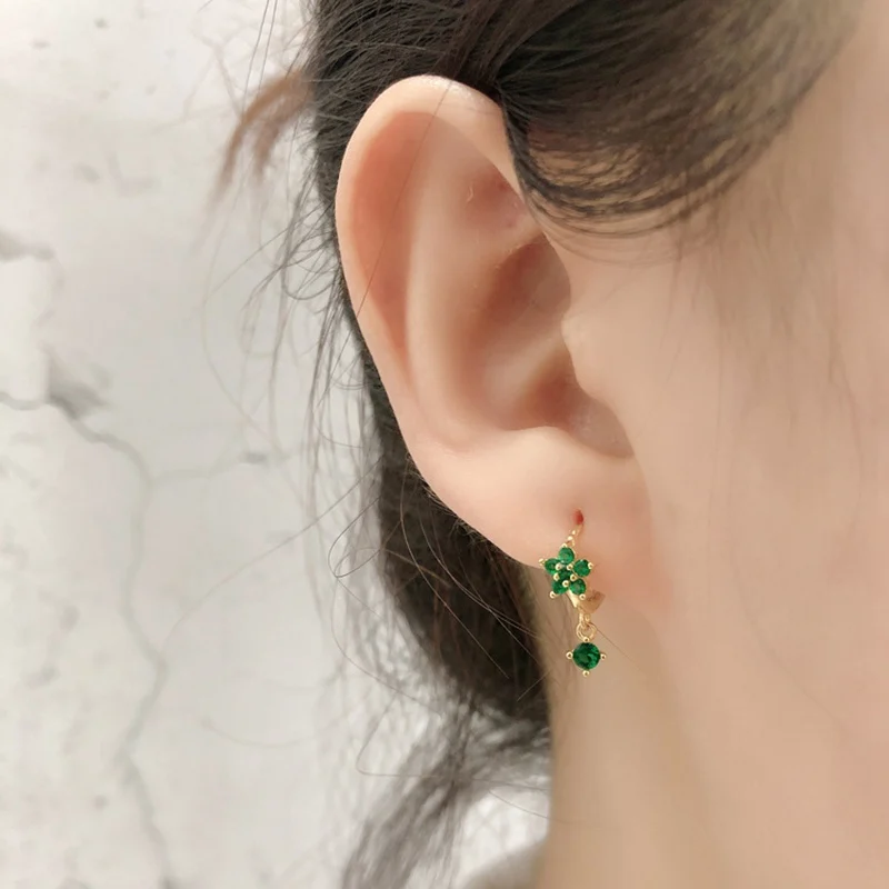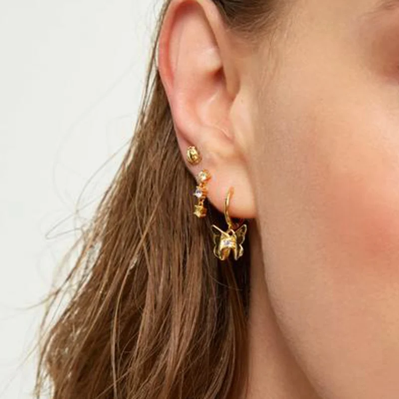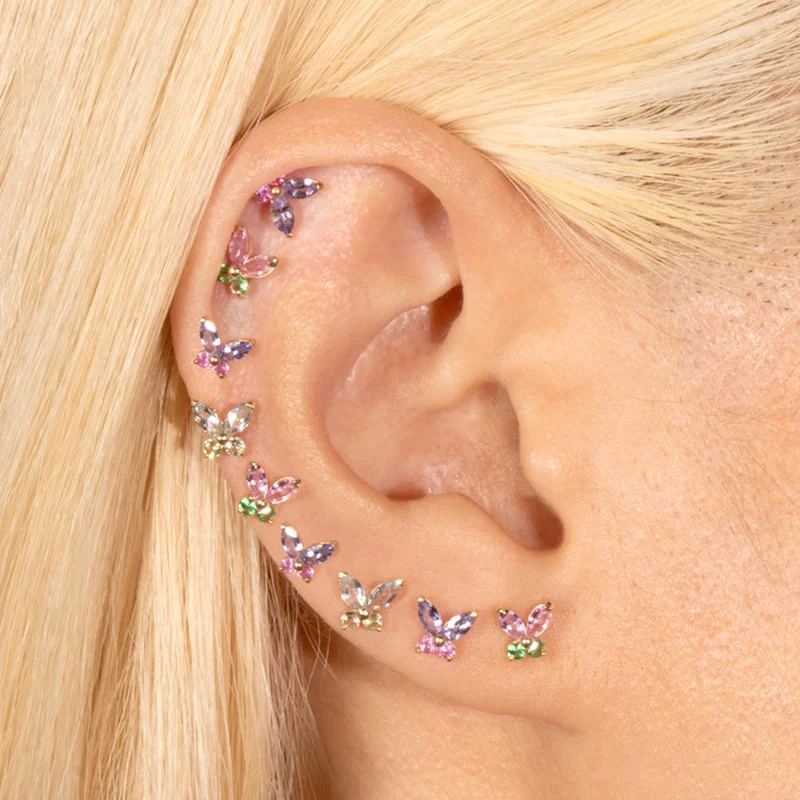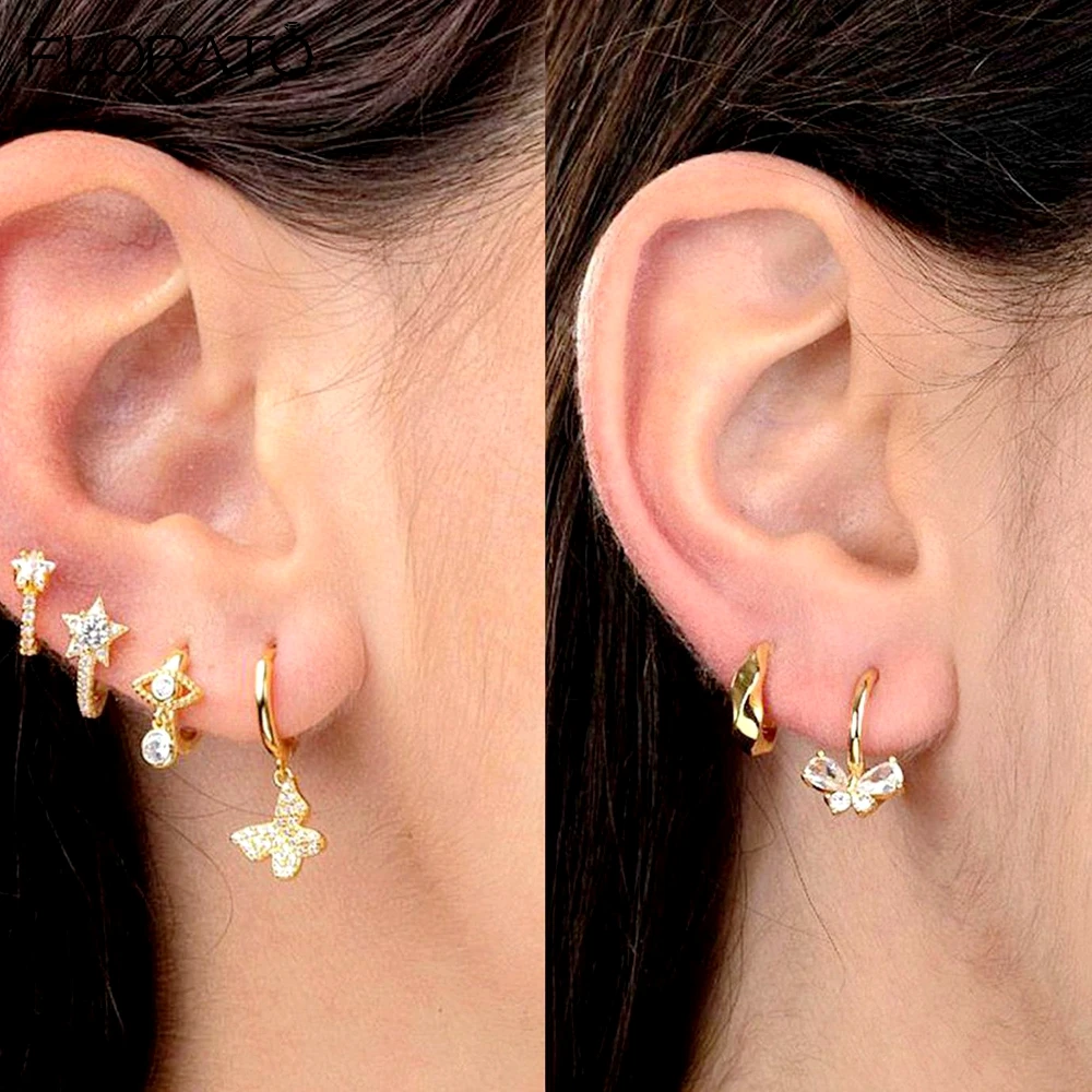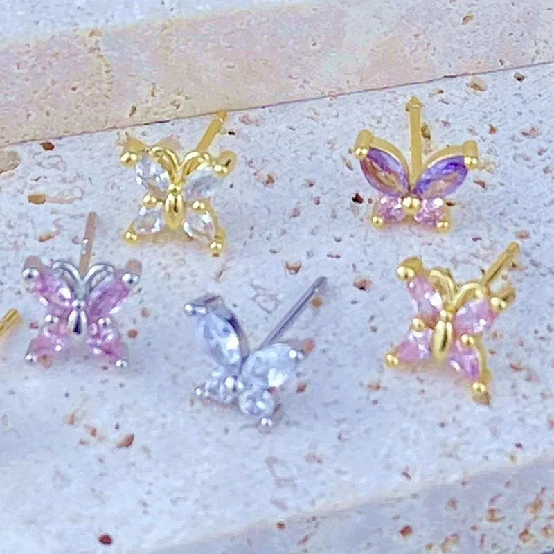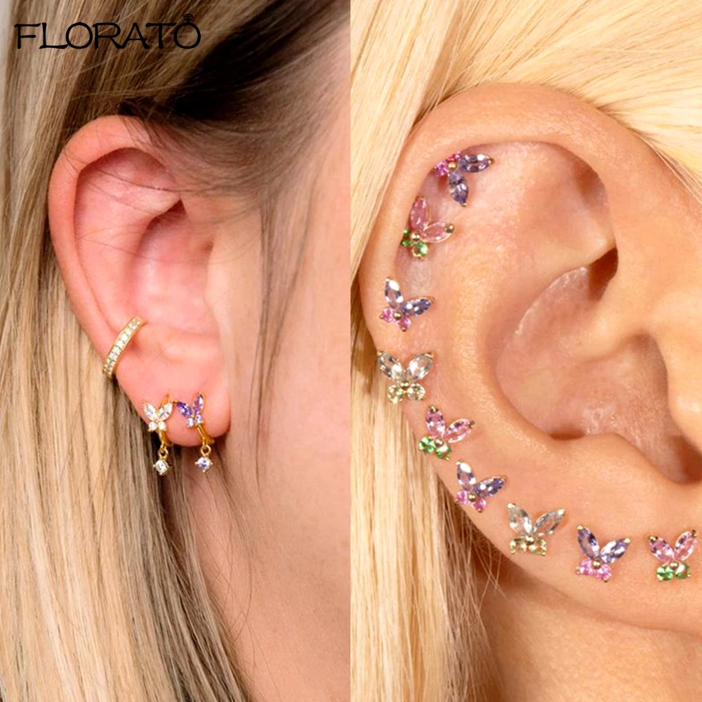 925 Sterling Silver Ear Needle Cute Crystal Butterfly Pendant Hoop Earrings for Women Colorful Flower Earrings Fashion Jewelry