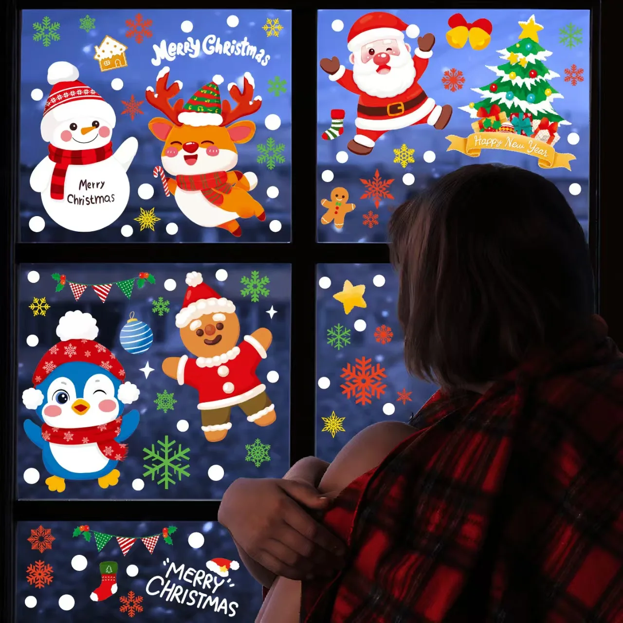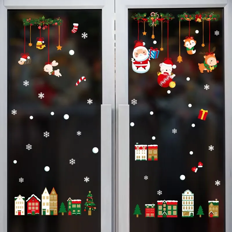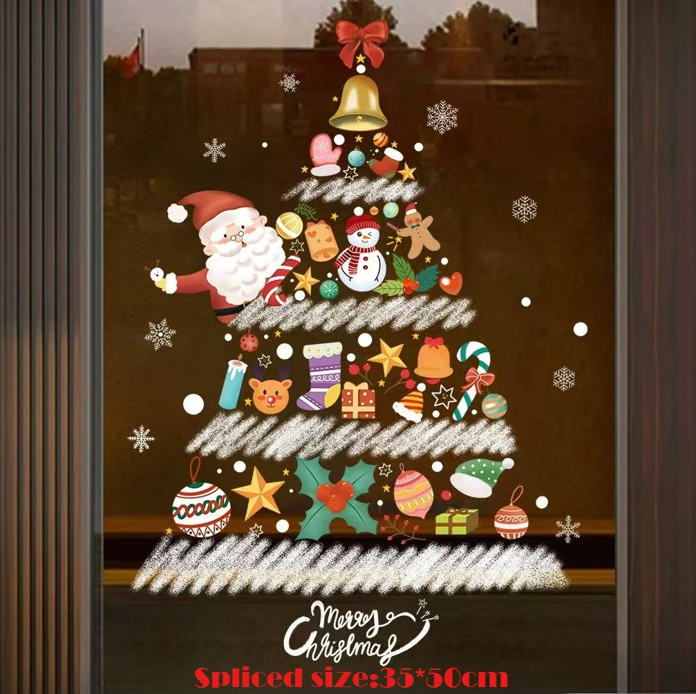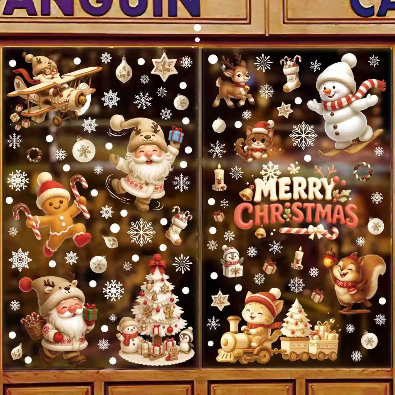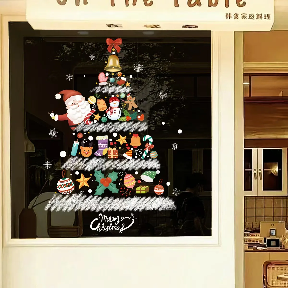1set Christmas Window Stickers Xmas Tree House Snowflake Glass Decal Merry Christmas Decoration Home Navidad 2026 Gifts Noel