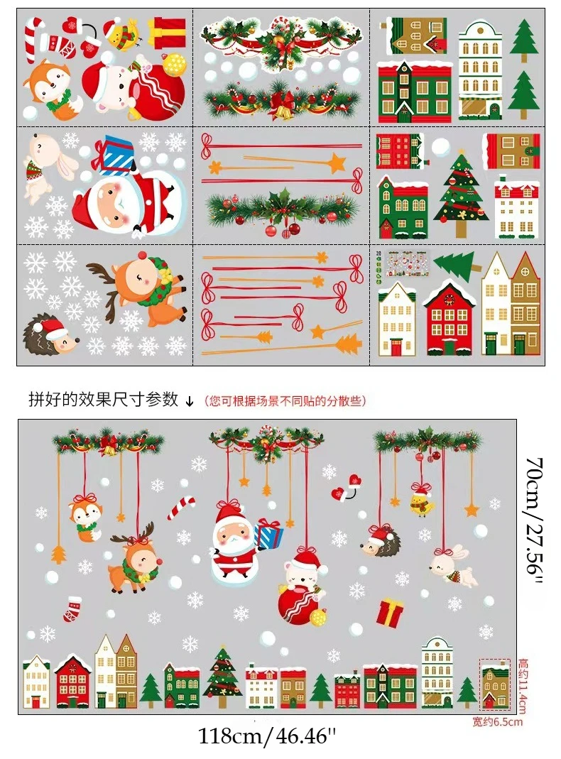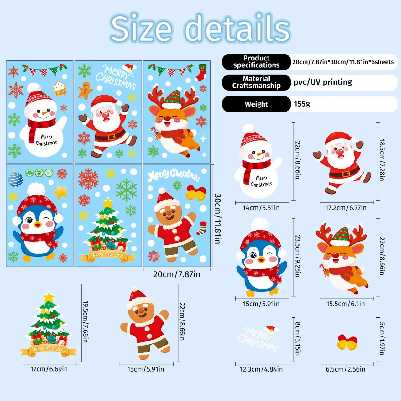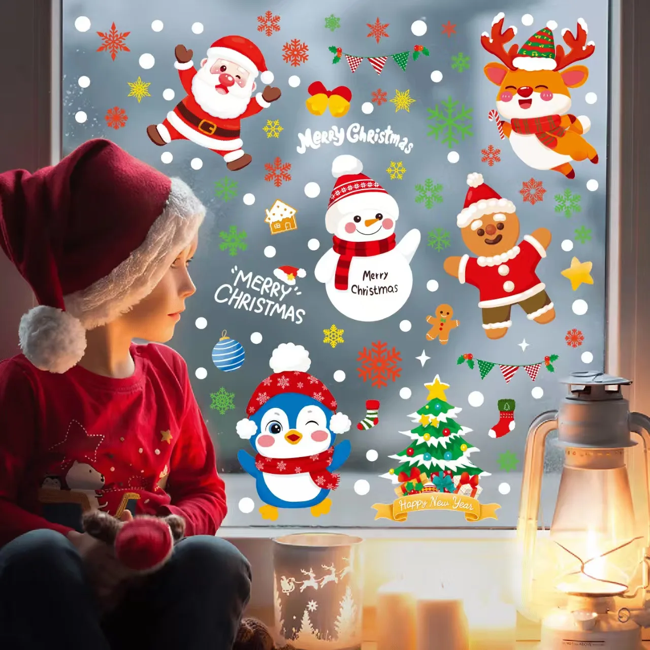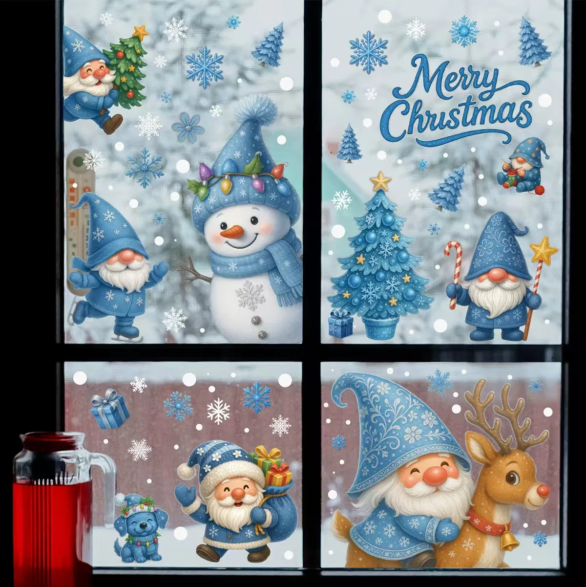 1set Christmas Window Stickers Xmas Tree House Snowflake Glass Decal Merry Christmas Decoration Home Navidad 2026 Gifts Noel