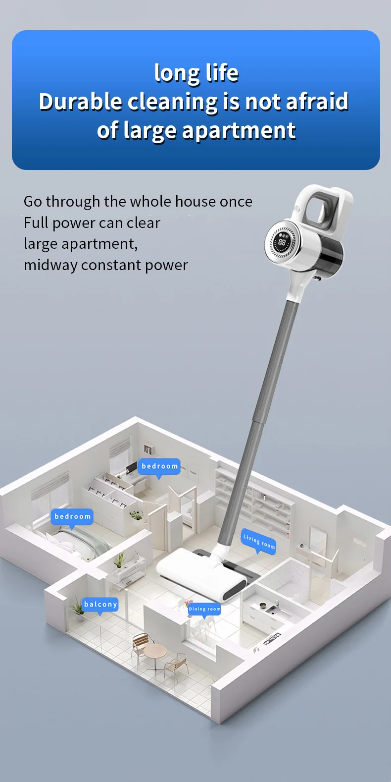 [Long-lasting Runtime] The cordless vacuum cleaner can clean an entire house on a single charge, Energy-saving mode:48 minutes, Max mode:25mins.