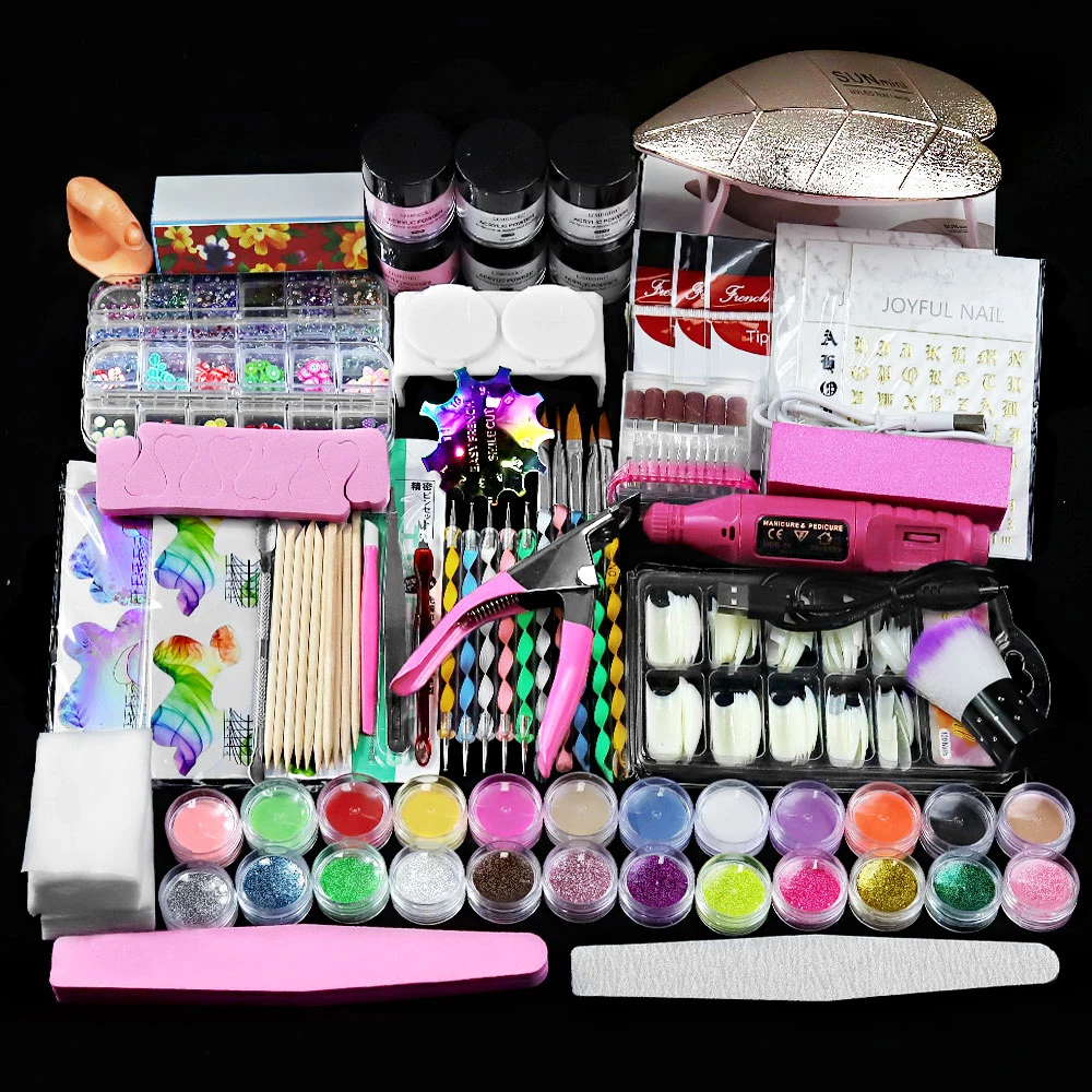 Acrylic Nail Kit Professional Set Powder Glitter Nail Extension Set Full Manicure Set Nail Art Liquid Nail Decorations Tools Kit