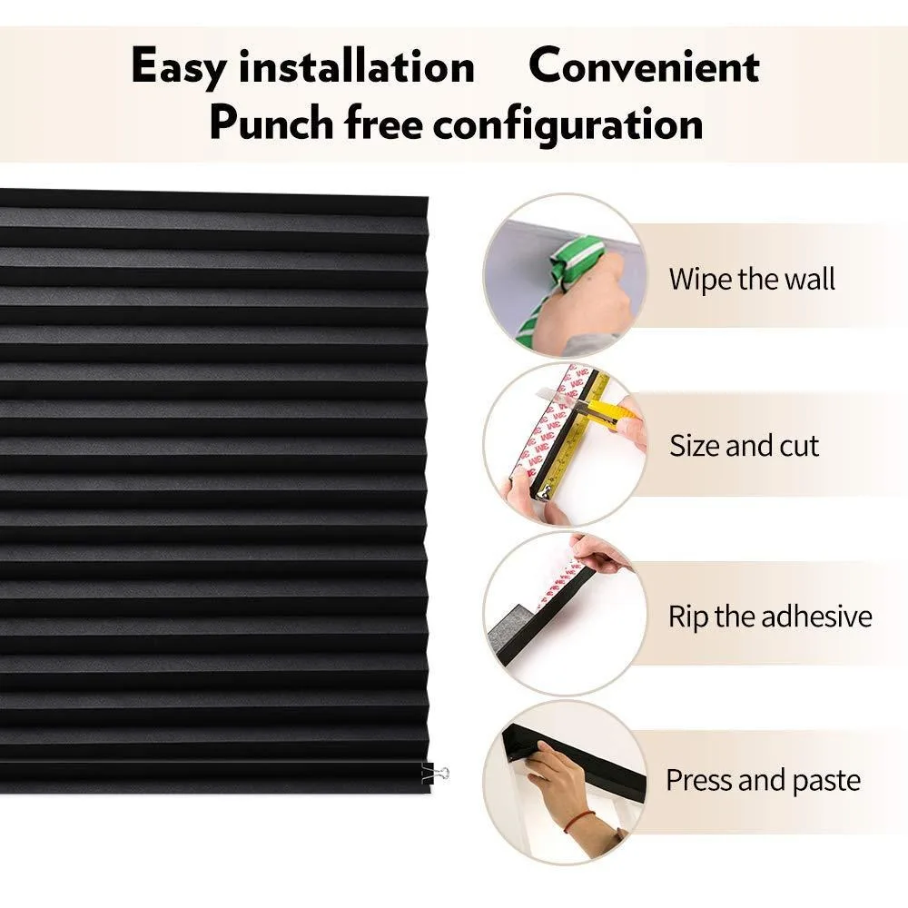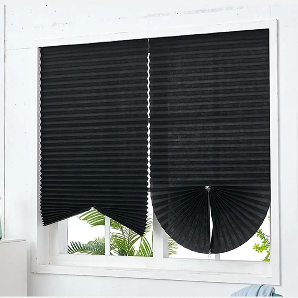 Adhesive Blackout Darkening Pleated Window Shade Blinds Portable Temporary Blinds Bedroom Apartment Dorm Roller Blackout Curtain