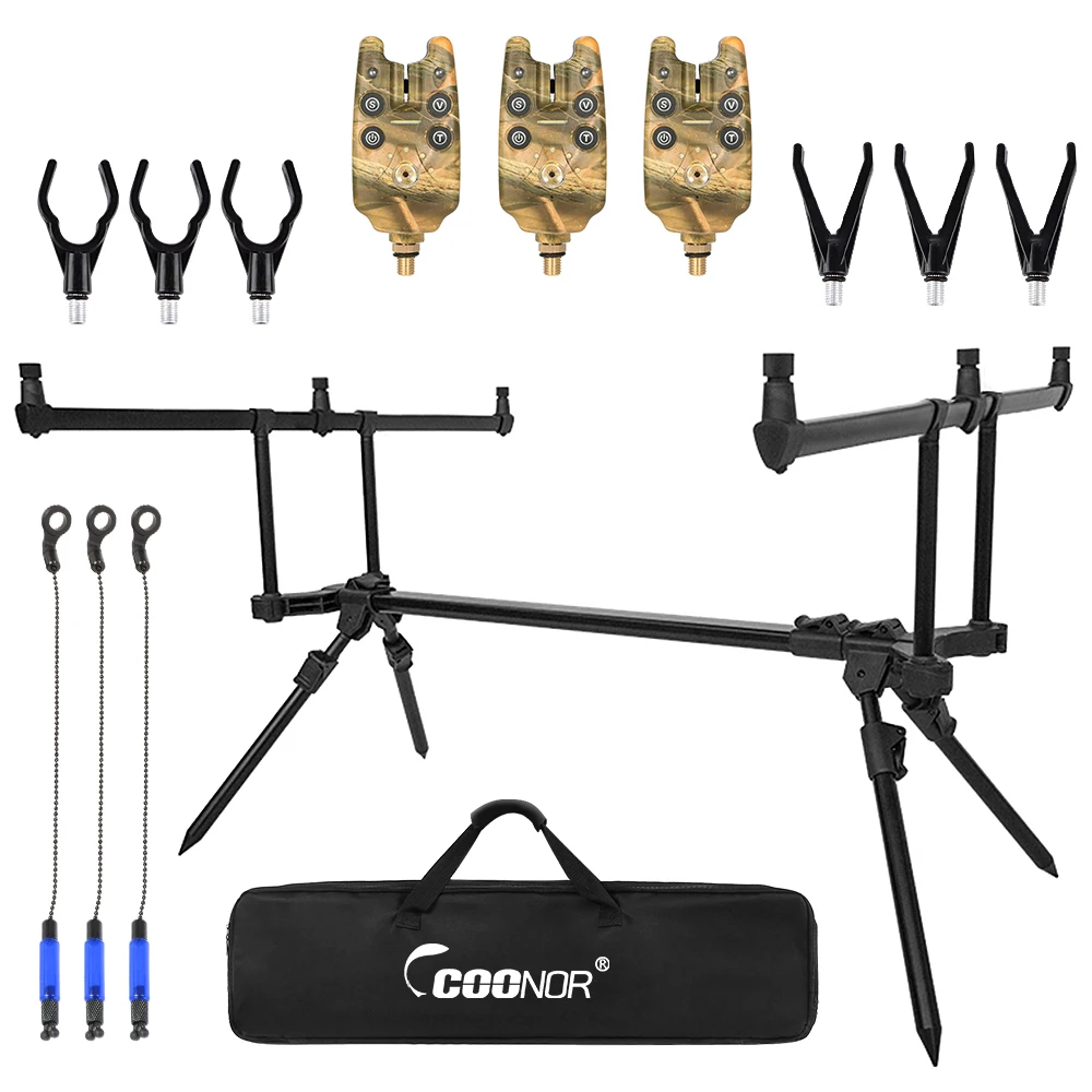 Adjustable Retractable Carp Fishing Rod Stand Holder with 3 Fishing Bite Alarms 3pcs Fishing Bait Swinger Fishing Tackle Set photo review