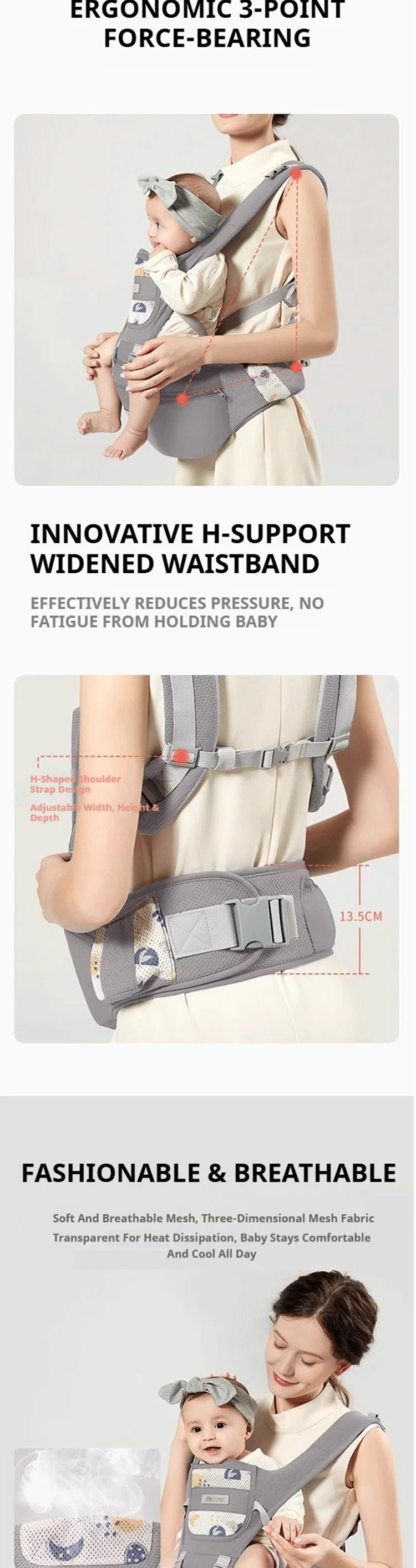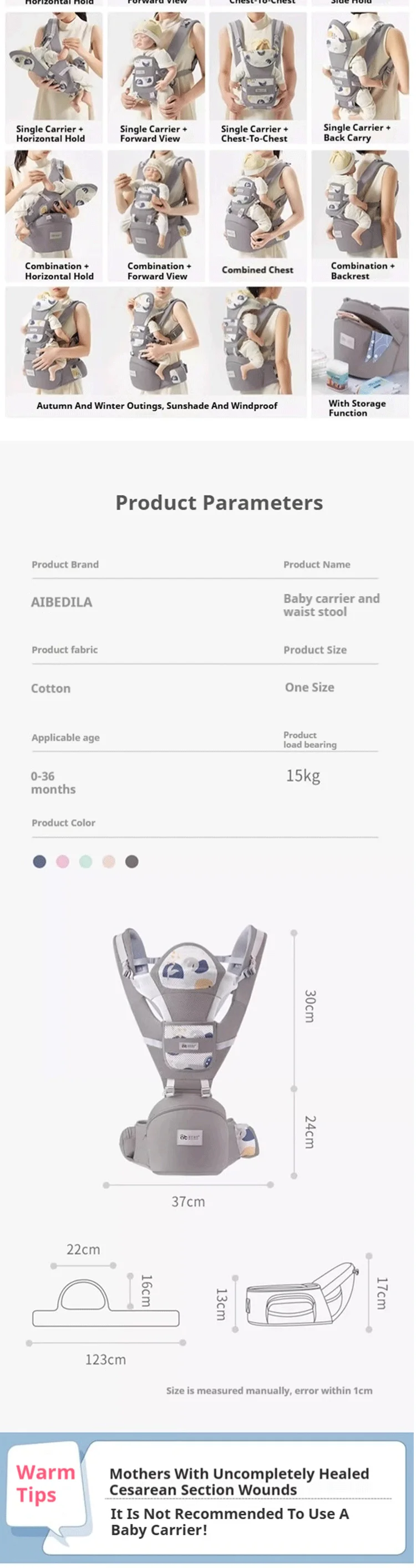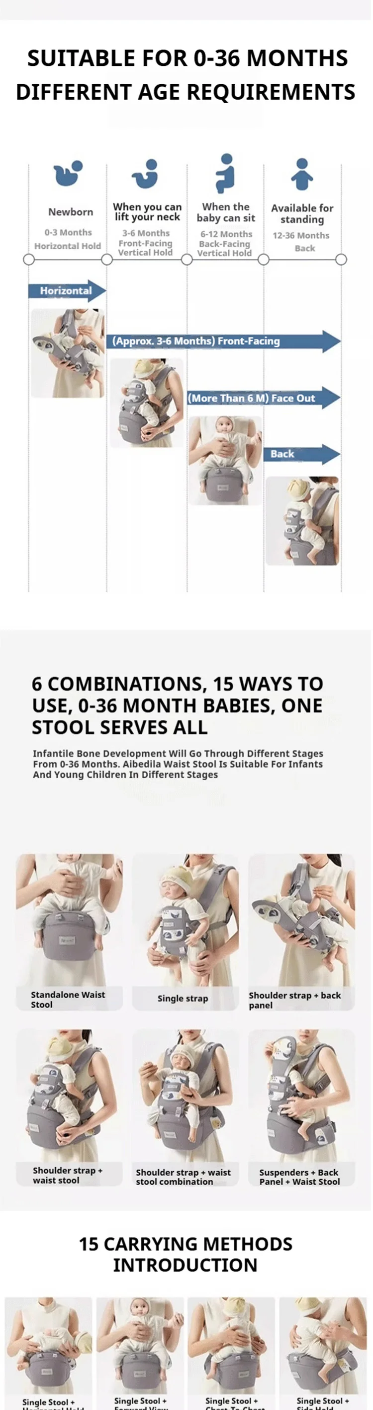 - Carriers Type: Front Carry,Horizontal,Front Facing,Face-to-Face