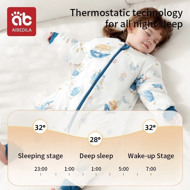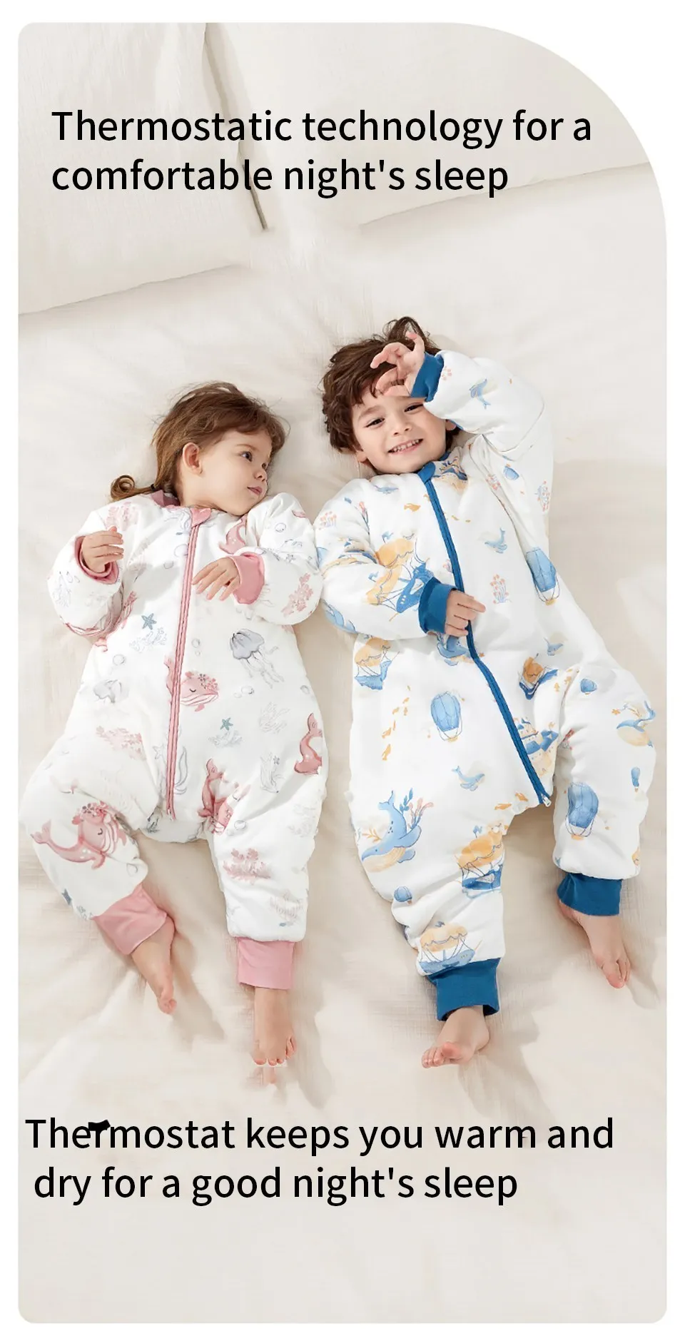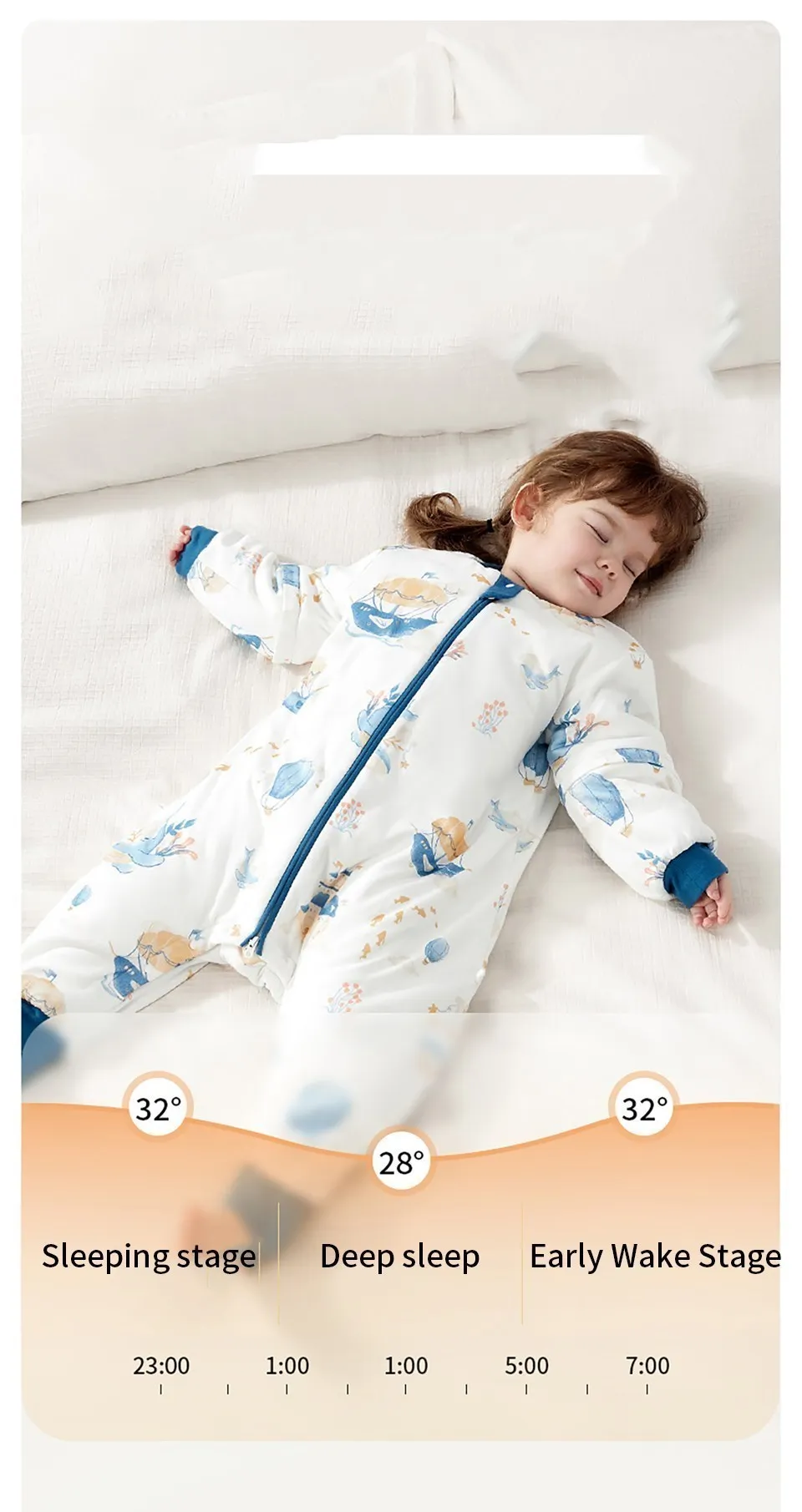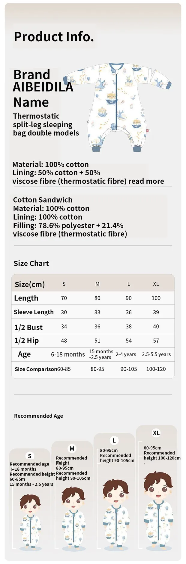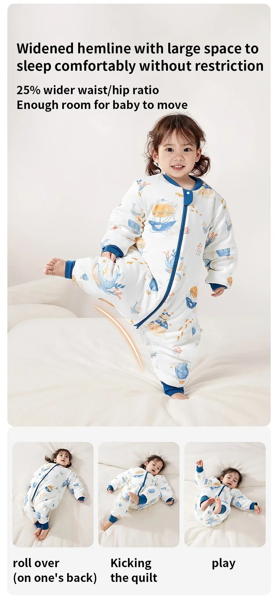 AIBEDILA Baby Thickening Split-legged Sleeping Bag With Detachable Sleeves For Boys Girls Children’s Sleepsacks Autumn Winter