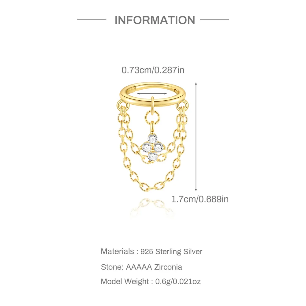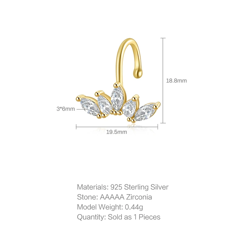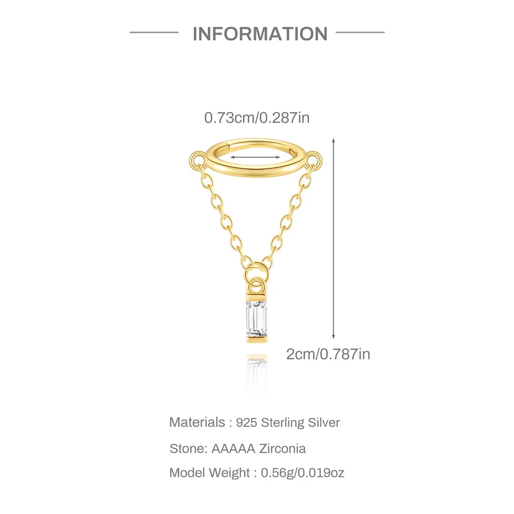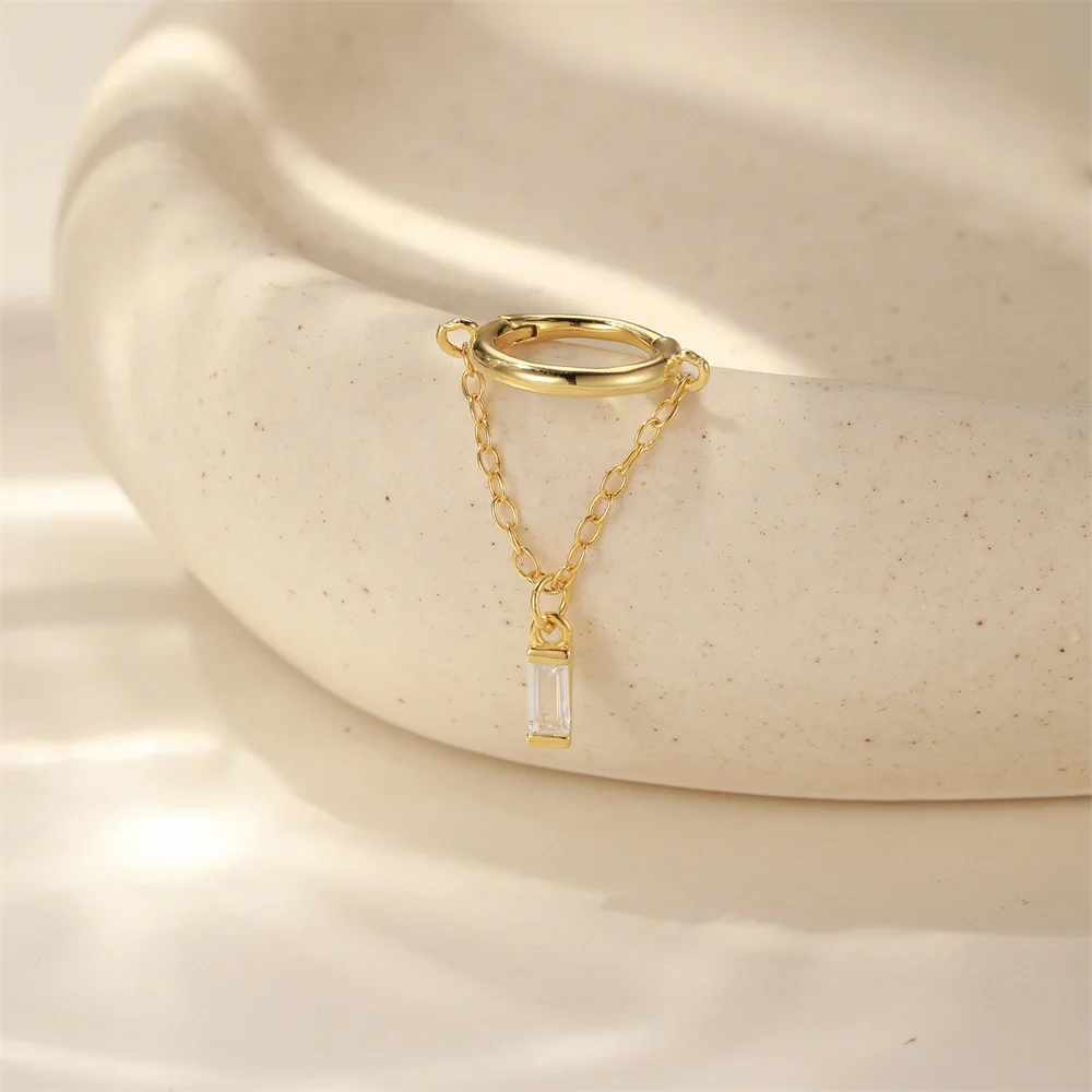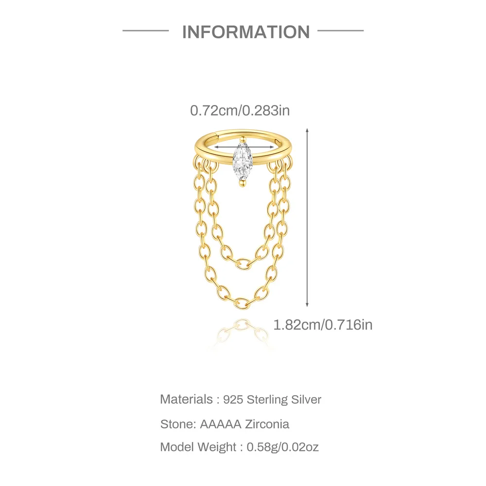925 Sterling Silver White Zircons Pave Chain Tassel Ear Cuffs For Women Non Pierced Oval Crystal Crown Shape Clip Earrings