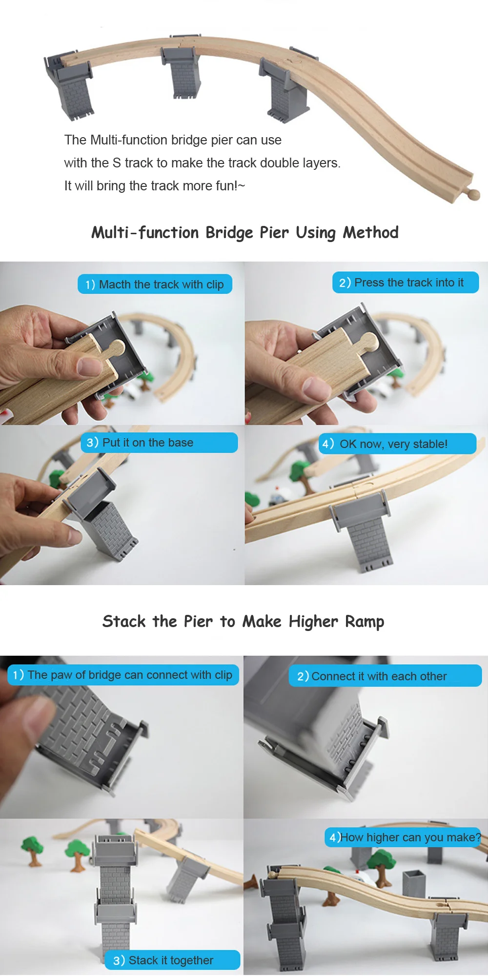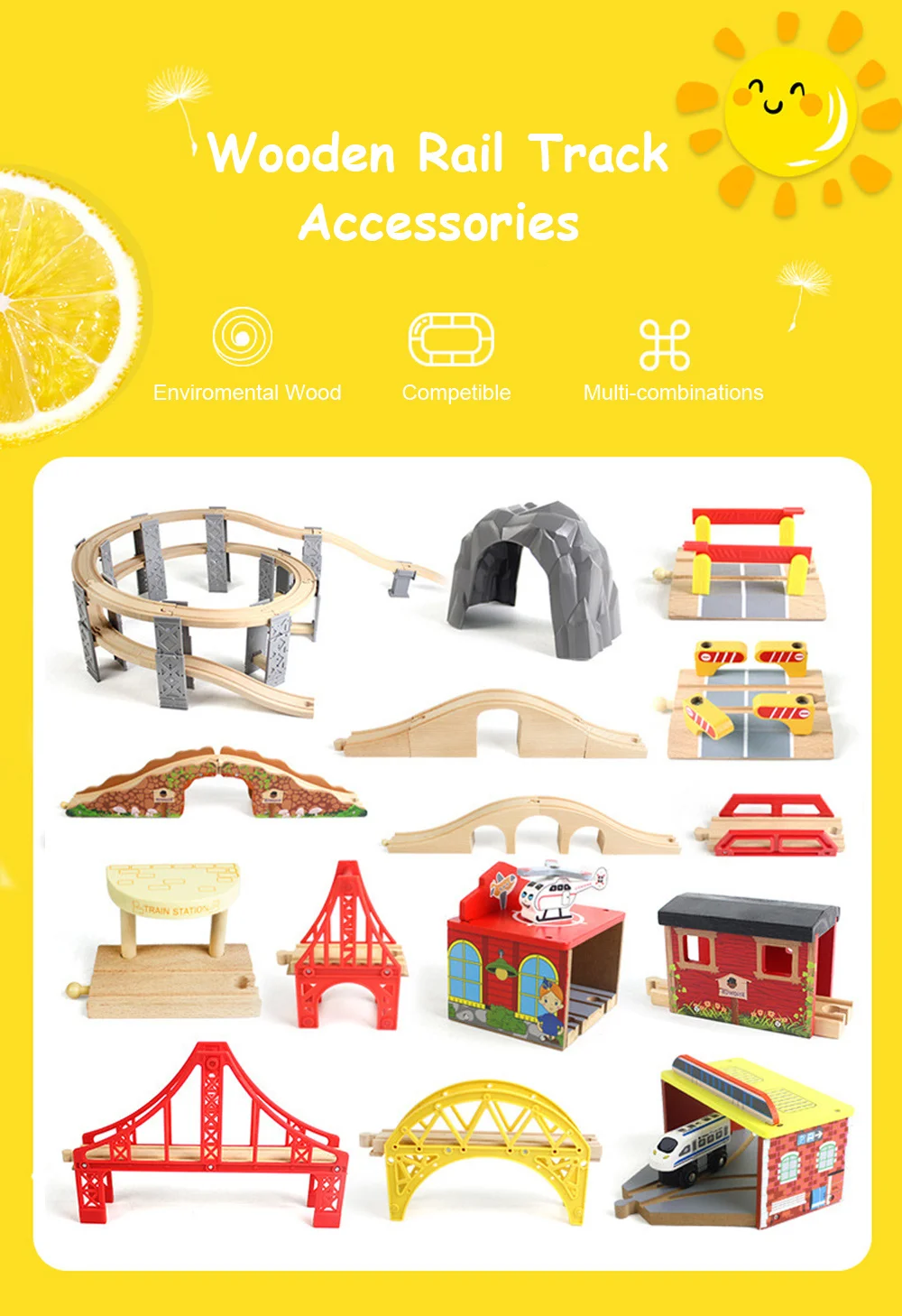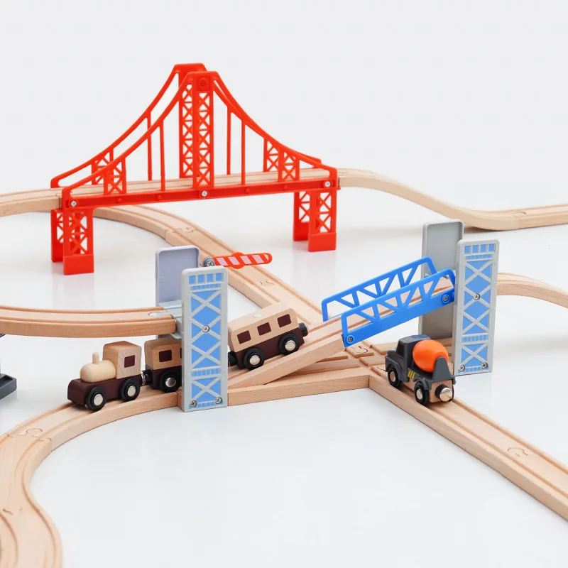 All kinds of Wooden Train Tracks Accessories Beech Wood Railway Tracks Wooden Bridge Tunnel fit for Wood Tracks Toys for Kids