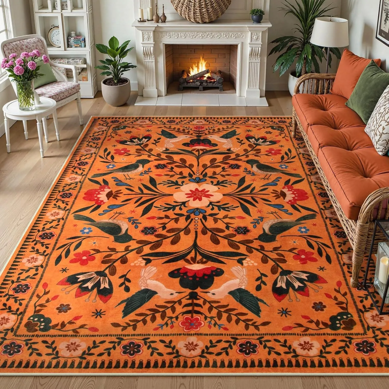 American Pastoral Style Flora Fauna Print Rugs Carpet for Living Room Bedroom Decor Home Anti-slip Large Area Carpets Doormat