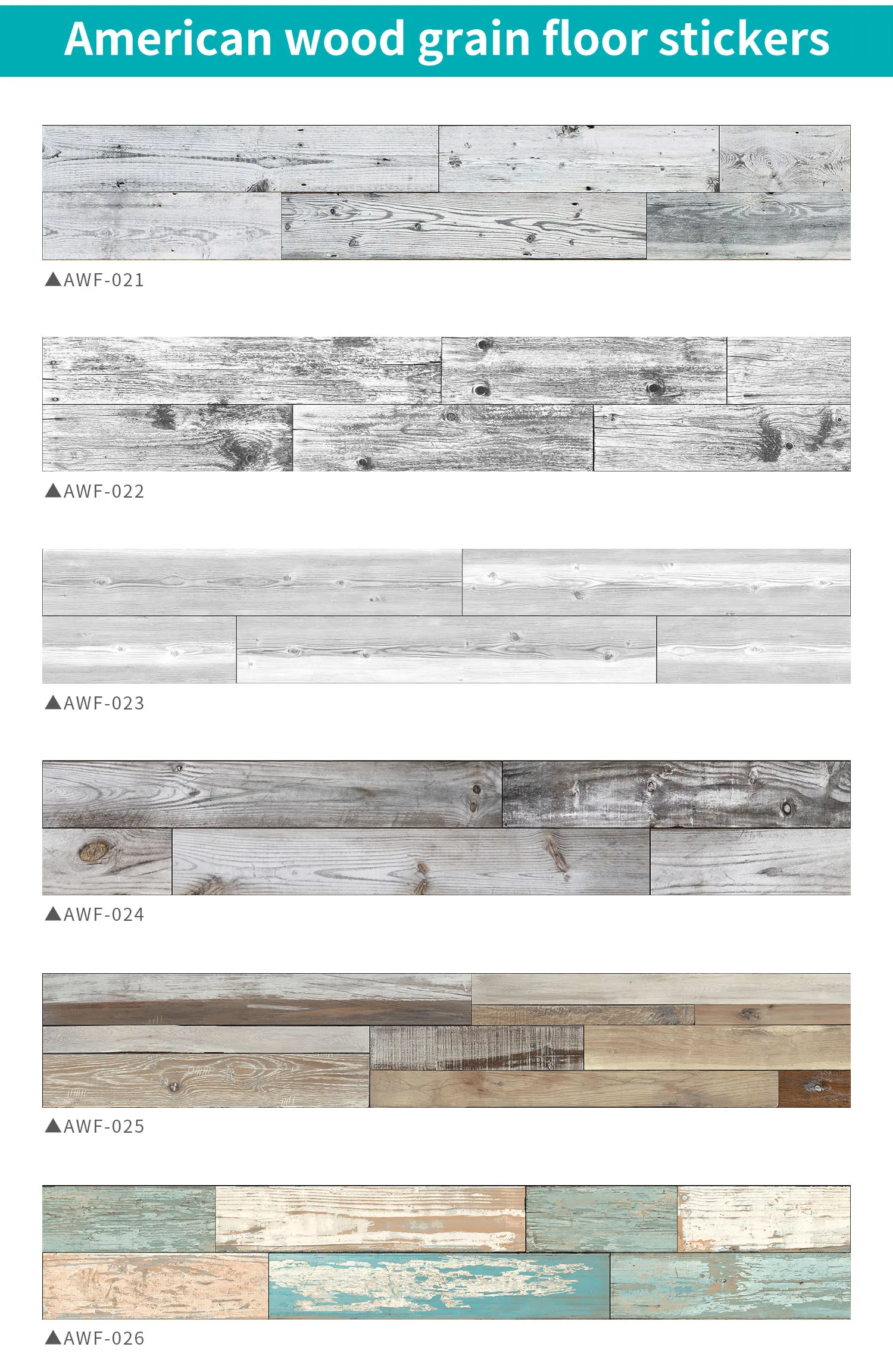 Transform kitchens, bathrooms, cabinets, or stairs in hours with our peel-and-stick American wood grain floor stickers — choose from 20+ textures (vintage grey, rustic brown, teal-washed, etc.) to match farmhouse, industrial, or modern decor!