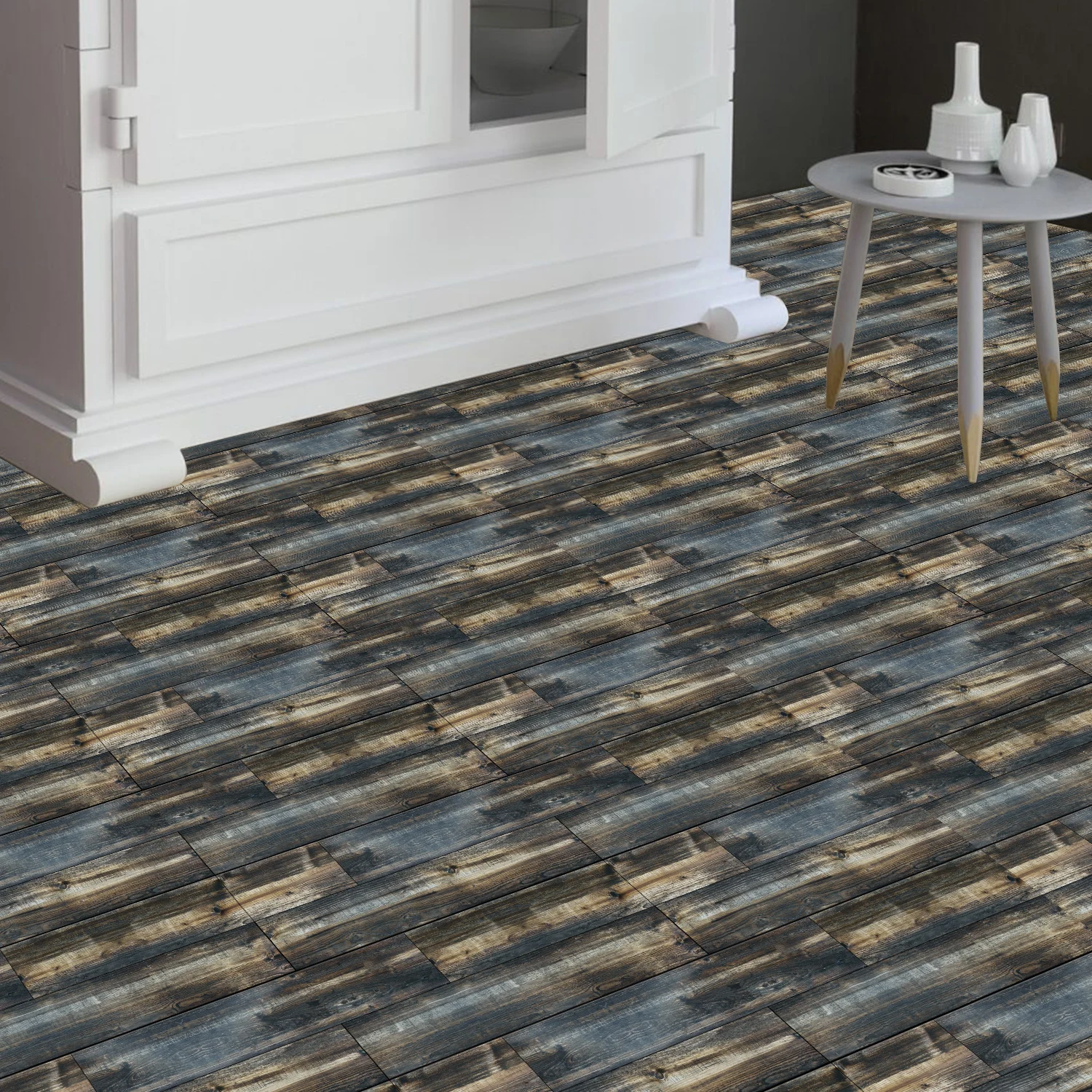 Transform kitchens, bathrooms, cabinets, or stairs in hours with our peel-and-stick American wood grain floor stickers — choose from 20+ textures (vintage grey, rustic brown, teal-washed, etc.) to match farmhouse, industrial, or modern decor!