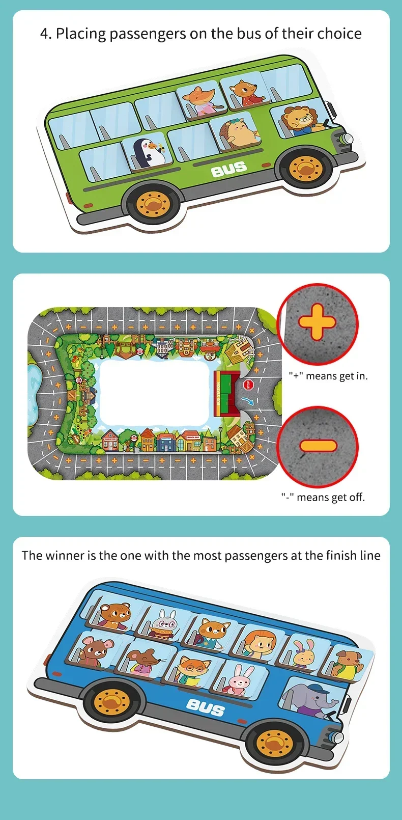 Animal Bus Station Board Game, Early Childhood Education Toy, Cognitive Transport Puzzle, Parent Child Board Game quantity