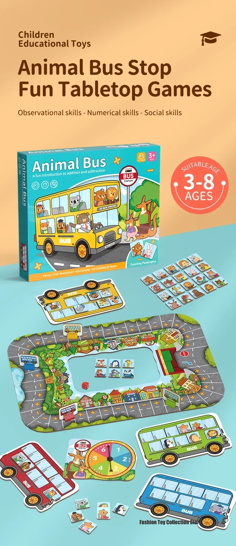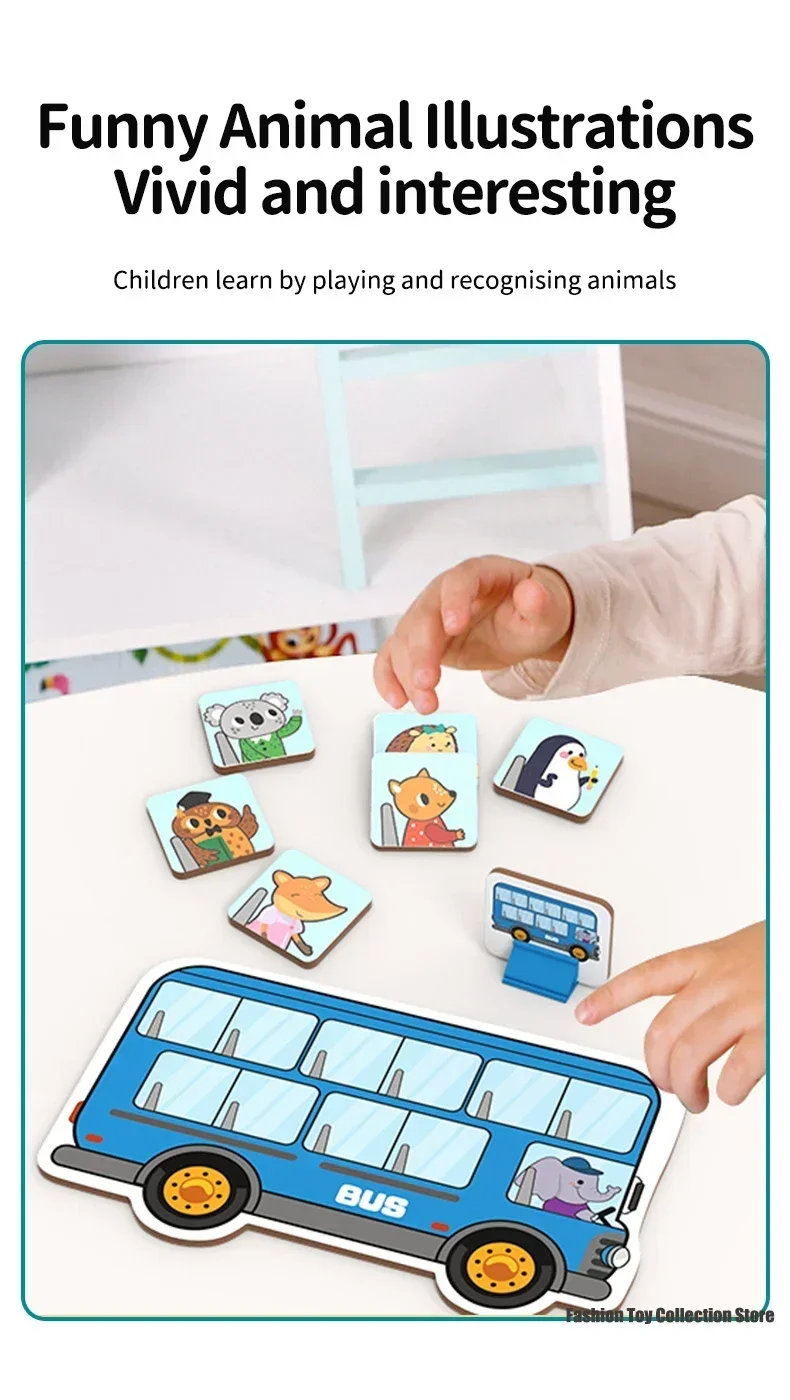 Animal Bus Station Board Game, Early Childhood Education Toy, Cognitive Transport Puzzle, Parent Child Board Game