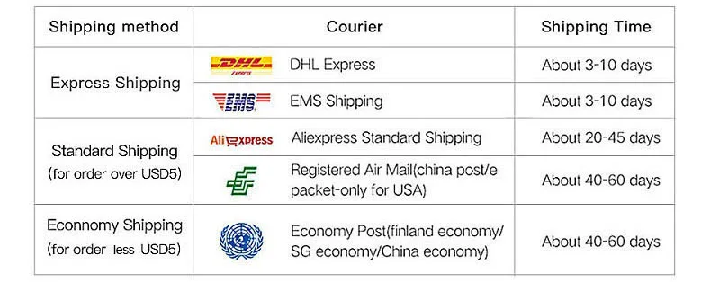 Any requirements please tell us before the parcel sending, because once parcel sending, we can’t change anything!We provide free shipping is China post air mail, thank you .