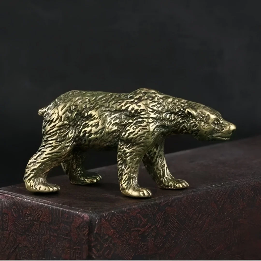 Antique Brass Polar Bear Figurine Solid Copper Feng Shui Home Decor Tea Pet Miniature Animal Desk Sculpture Gift