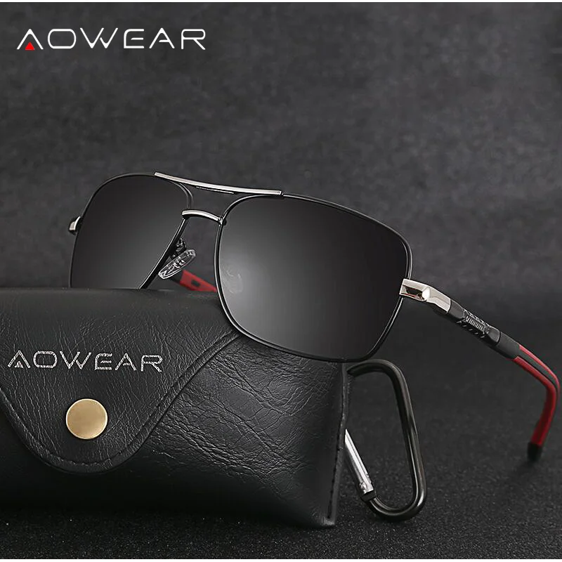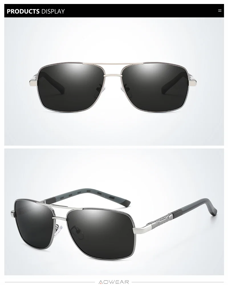 AOWEAR Men's Polarized Mirrored Sunglasses for Men Women Luxury Quality Retro Rectangle UV400 Driving Sun Glasses gafas de sol photo review
