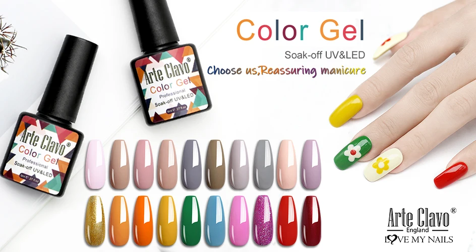 Arte Clavo 15ml Gel Polish Classical Pure Colors Glitter Semi Permanent UV Varnish Hybrid Nail Glue Soak Off Top Base Coat