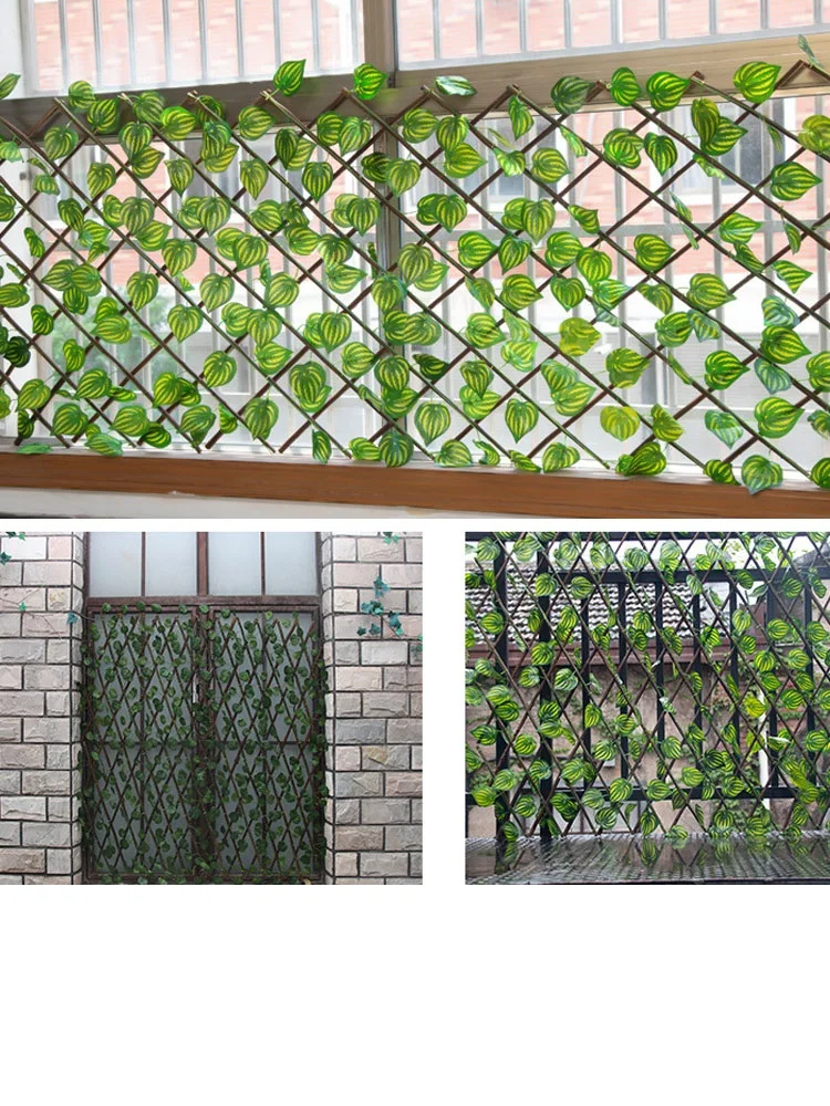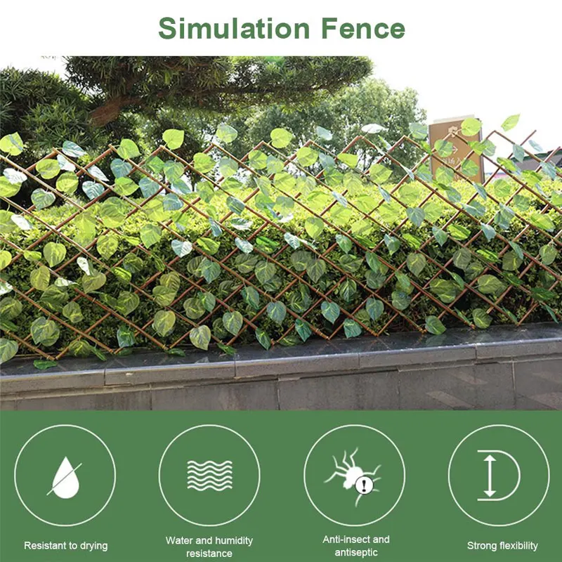 Artificial Retractable Garden Fence Wood Vines Privacy Fence Expandable Faux Ivy Climbing Plant Frame Garden Home Decorations