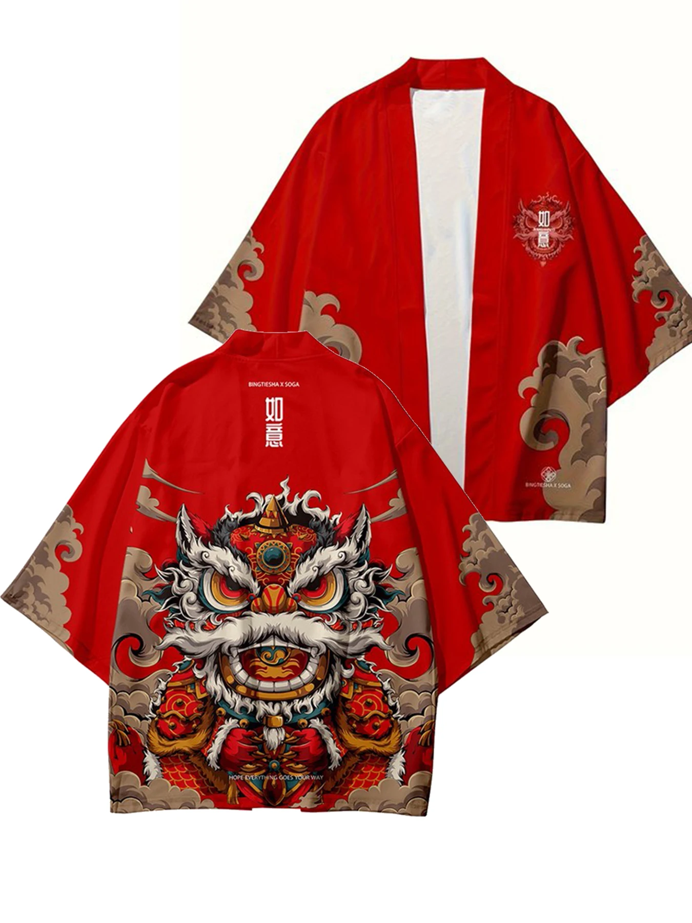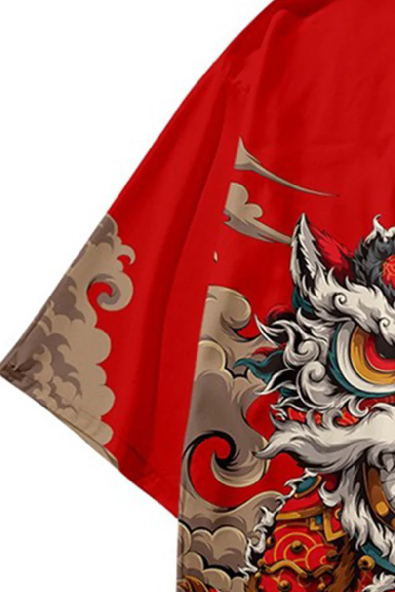 Asian Lion Rising Kimono Printed Pattern Men Women Harajuku Cloak Casual relaxed Chinese Style Traditional Clothing Beach Dress