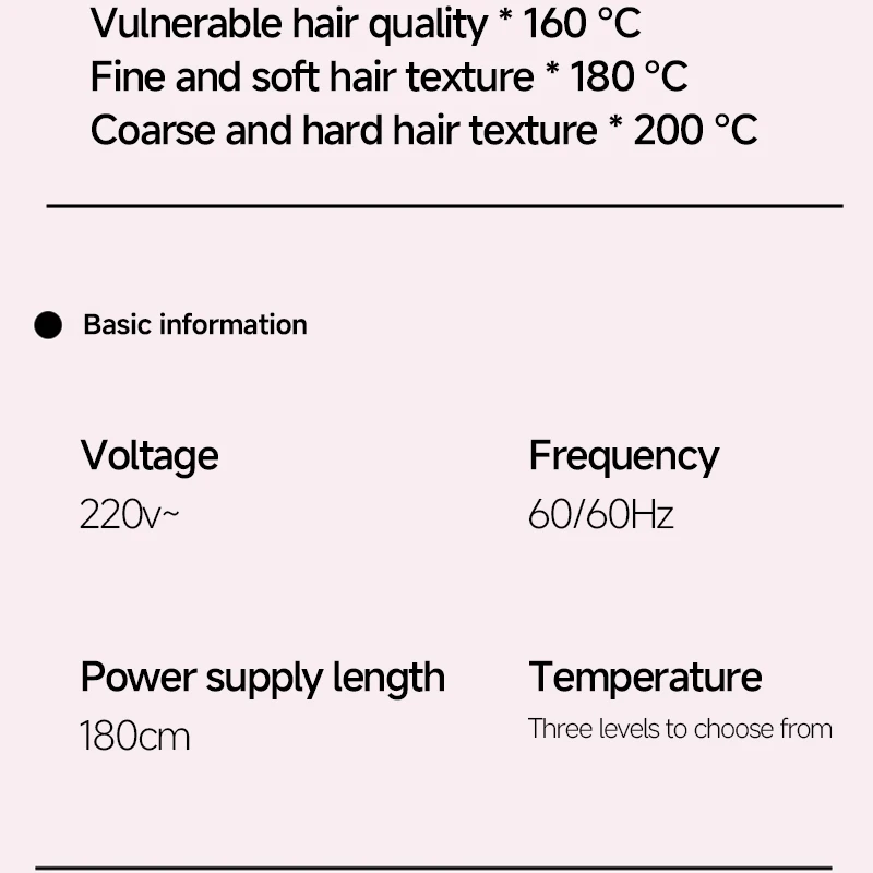 2.After heating, select the temperature suitable for your own hair (the minimum temperature for fine and soft hair, the middle temperature for medium and normal hair, and the maximum temperature for hard hair).
