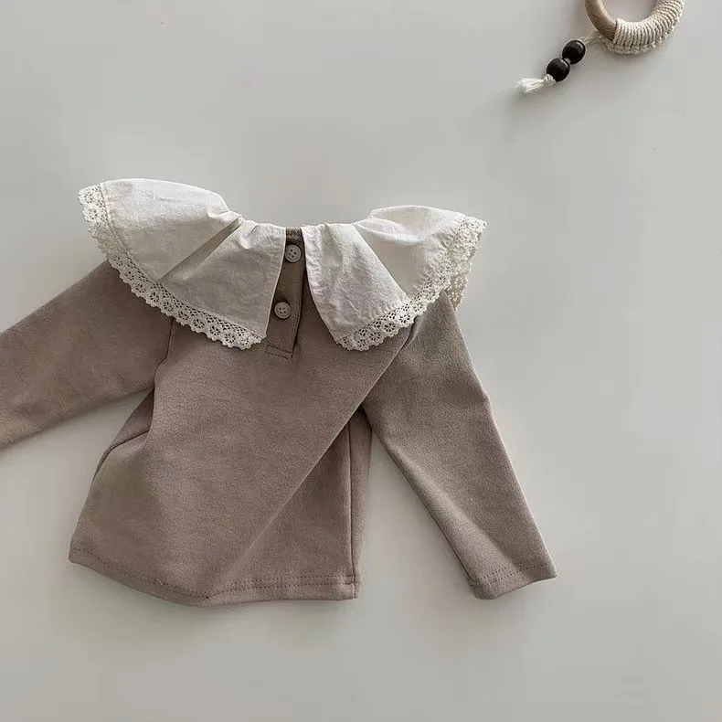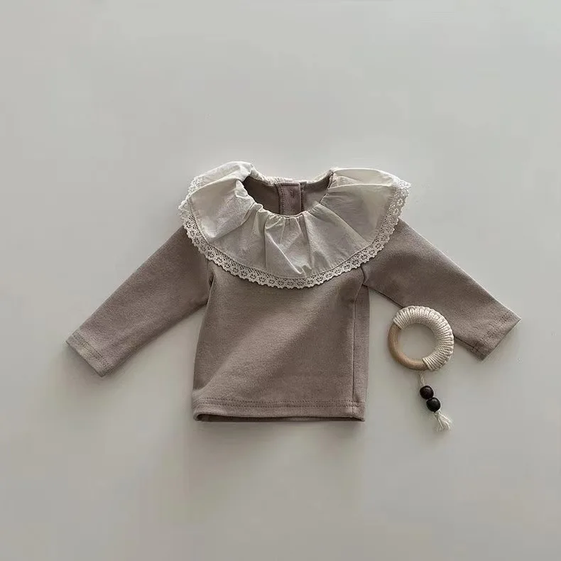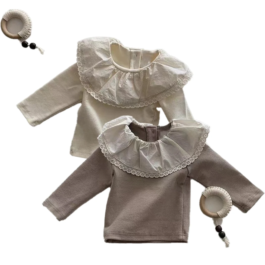 Autumn Baby Girls Floral Lace T-Shirt Spring Children’s Long Sleeve Tops Infant Base Shirt Toddler Girls’ Clothing for 0-3t