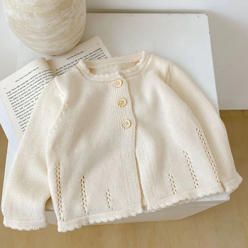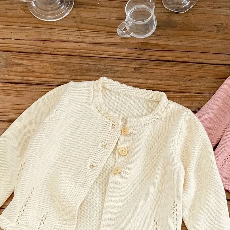 Autumn new baby clothing, 0-3 year old baby girl sweet hundred tower cardigan cotton yarn knitted sweater round neck jacket