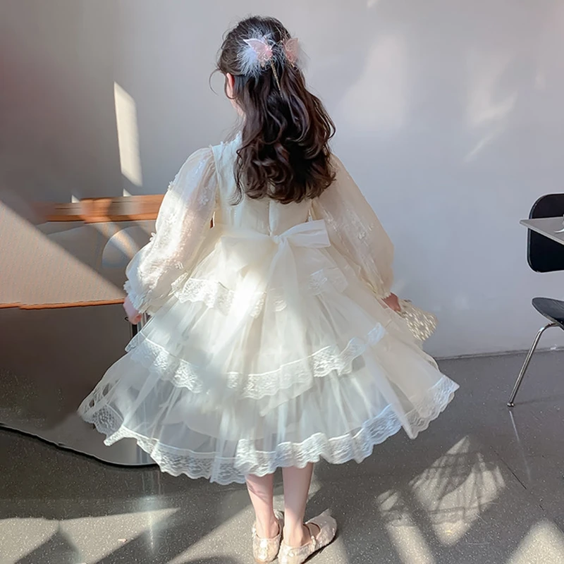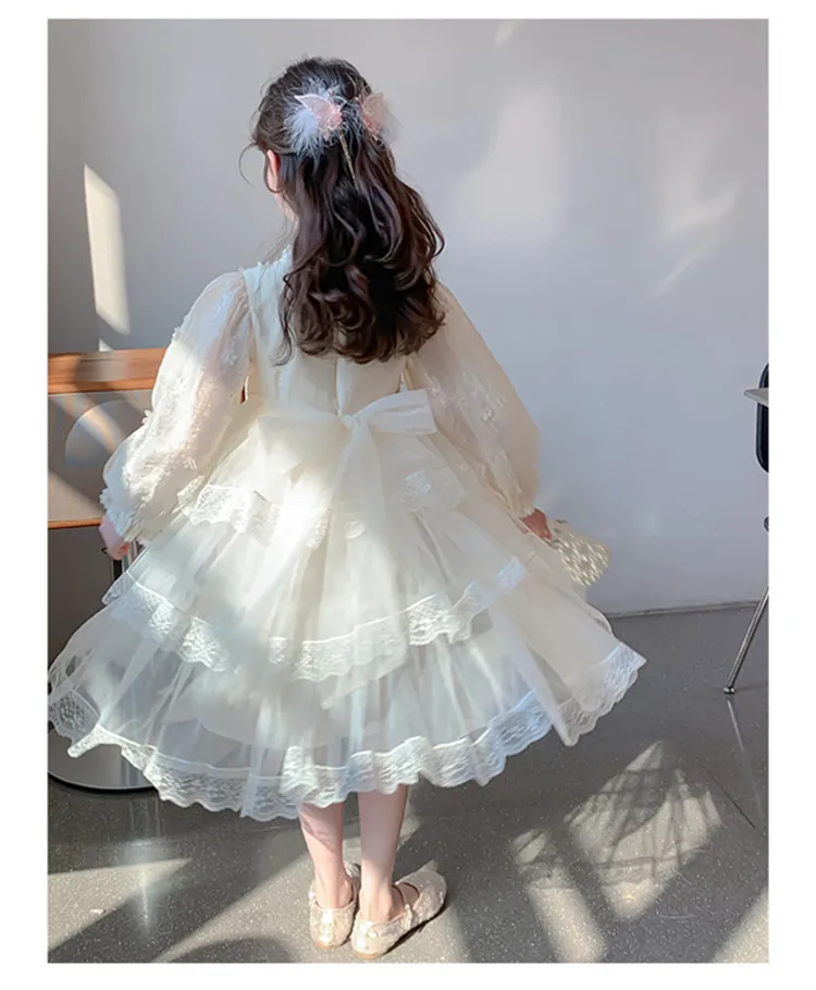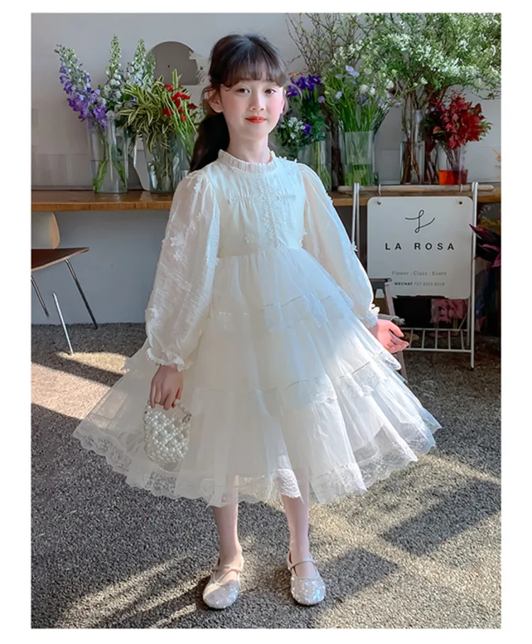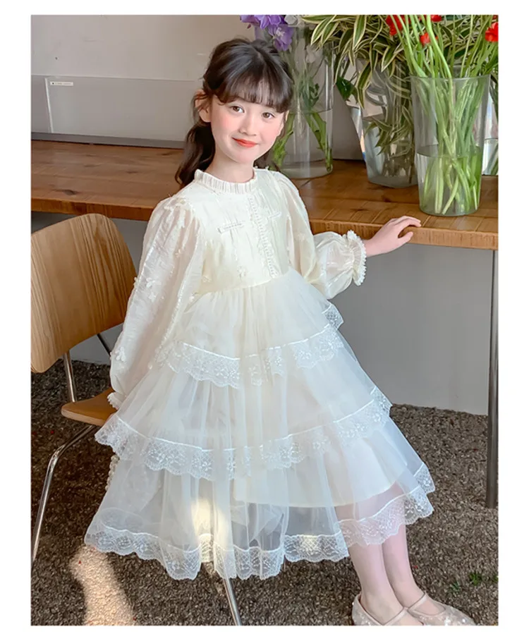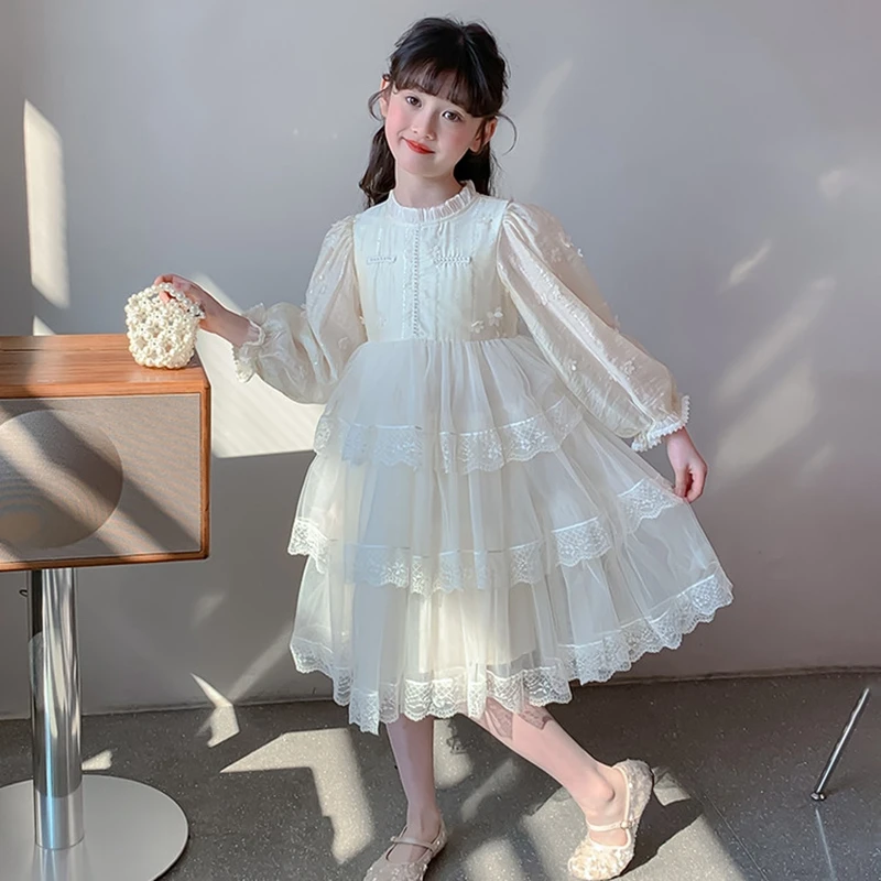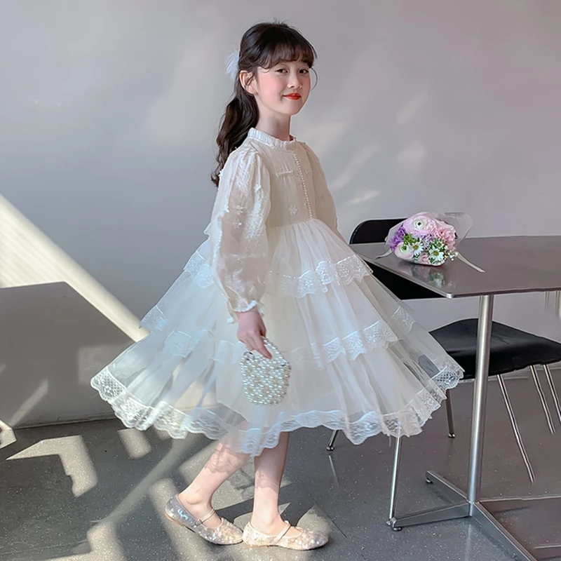 Autumn Spring 6 10 12 14 16 Years 120-170cm Children Teenage Princess Ball Gown Party Long Sleeve Kids Girls Layered Mesh Dress