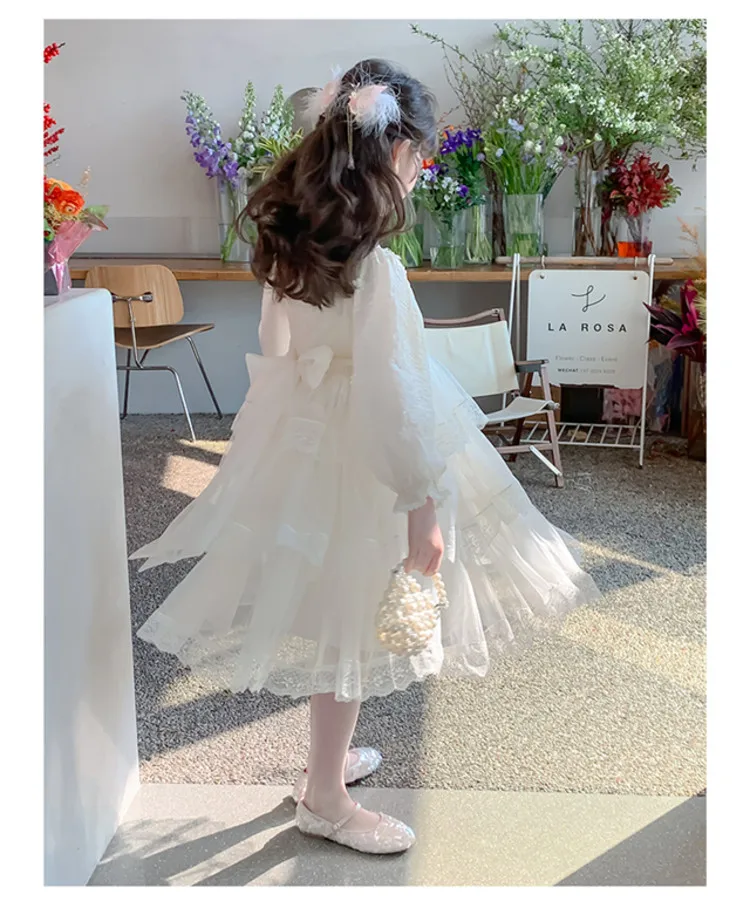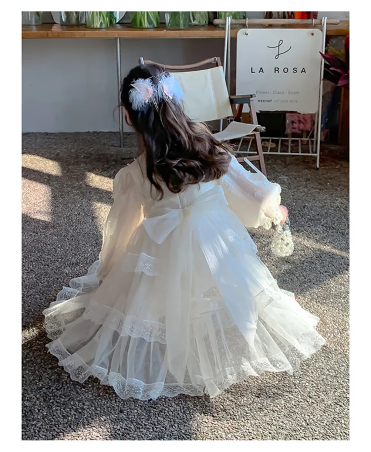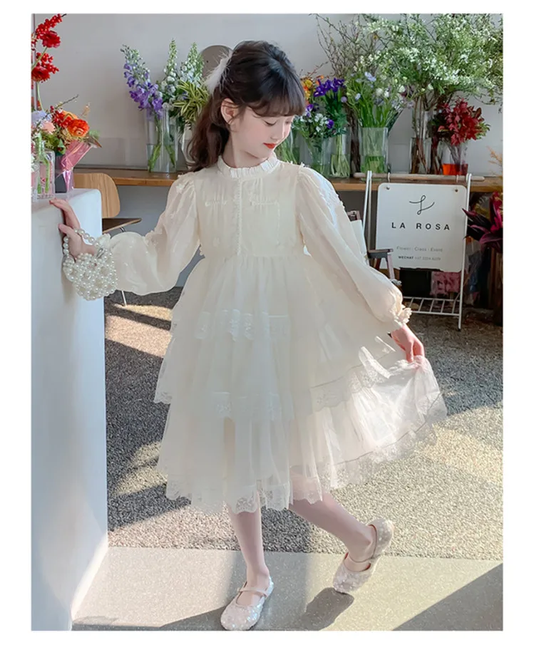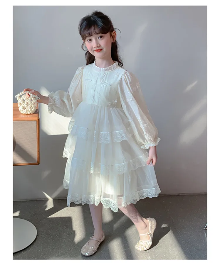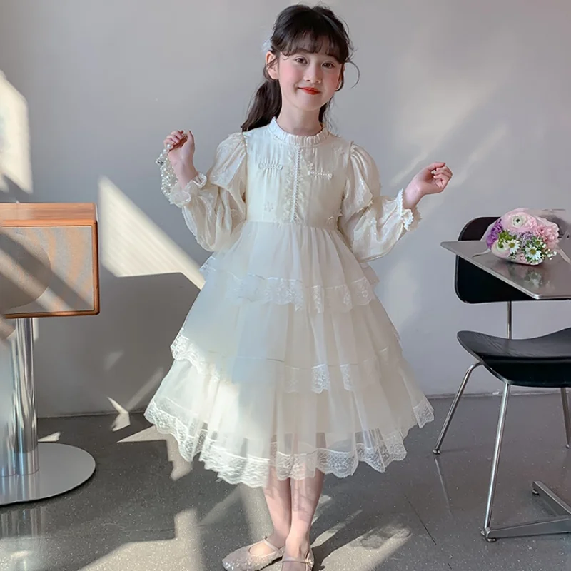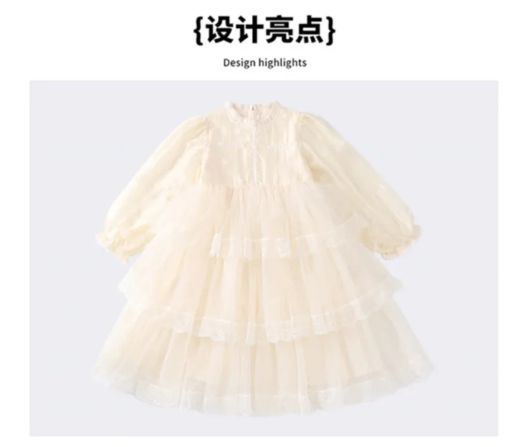 Autumn Spring 6 10 12 14 16 Years 120-170cm Children Teenage Princess Ball Gown Party Long Sleeve Kids Girls Layered Mesh Dress