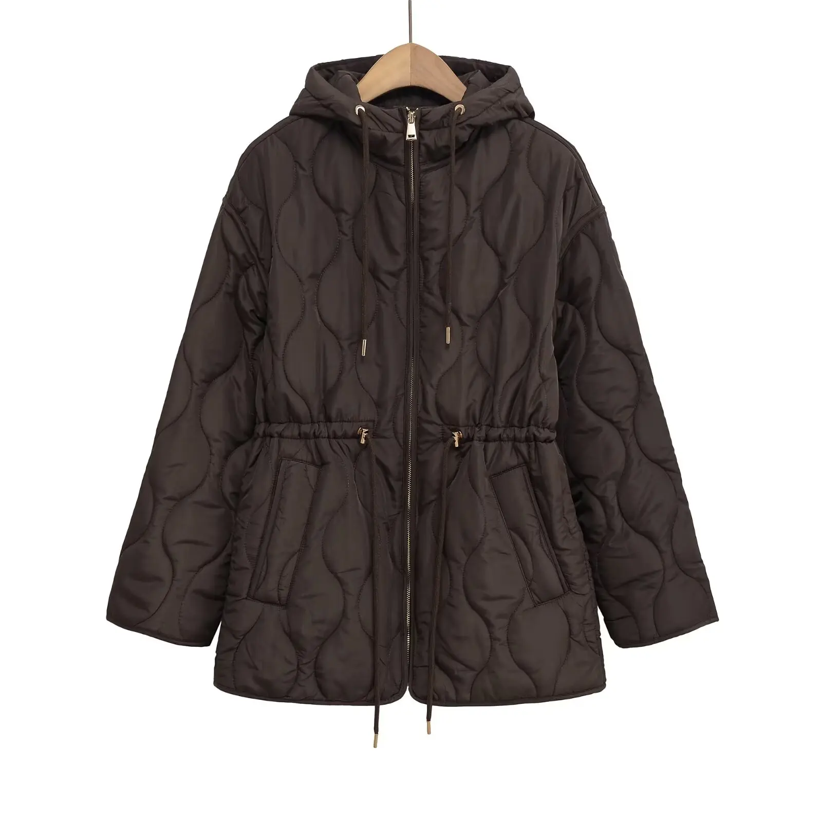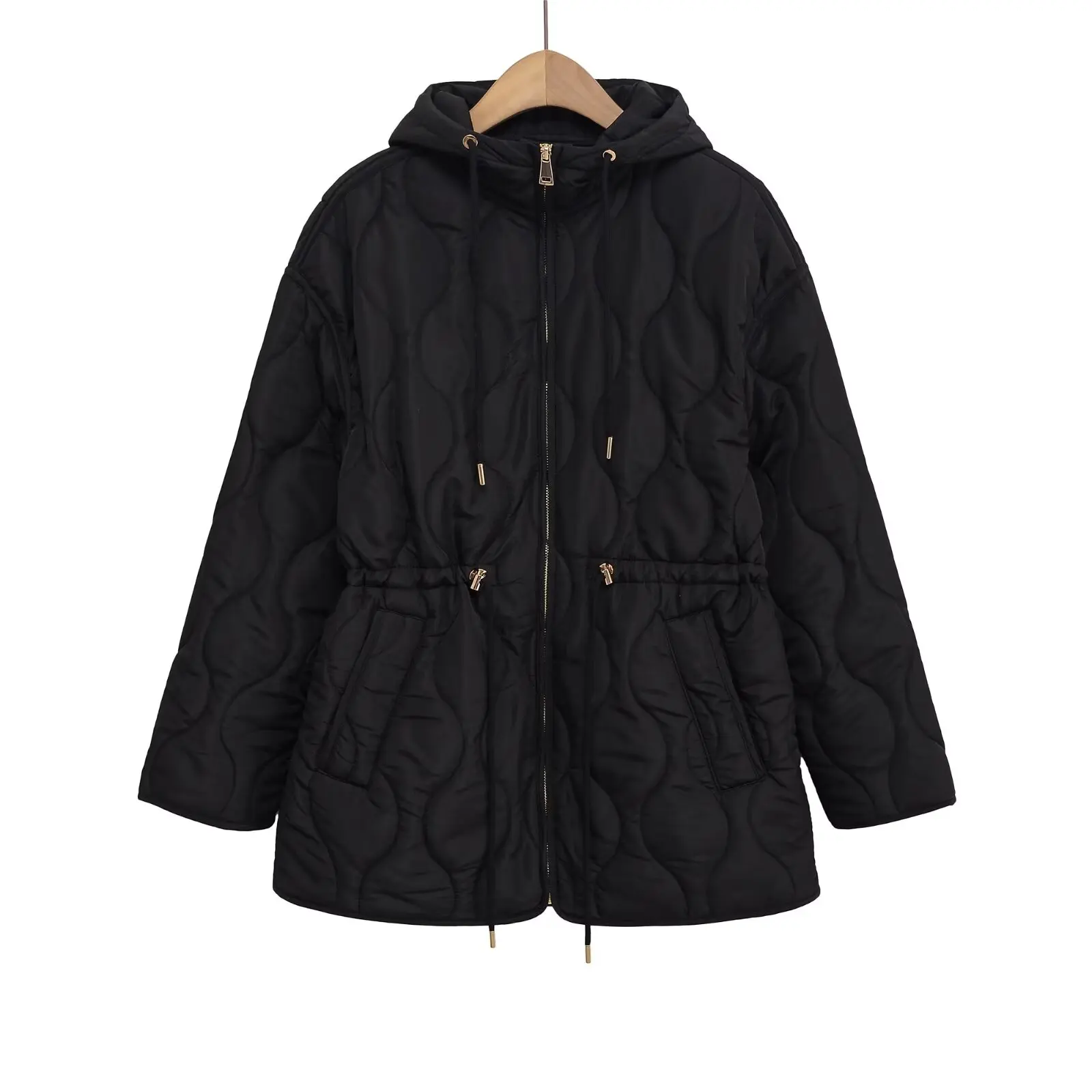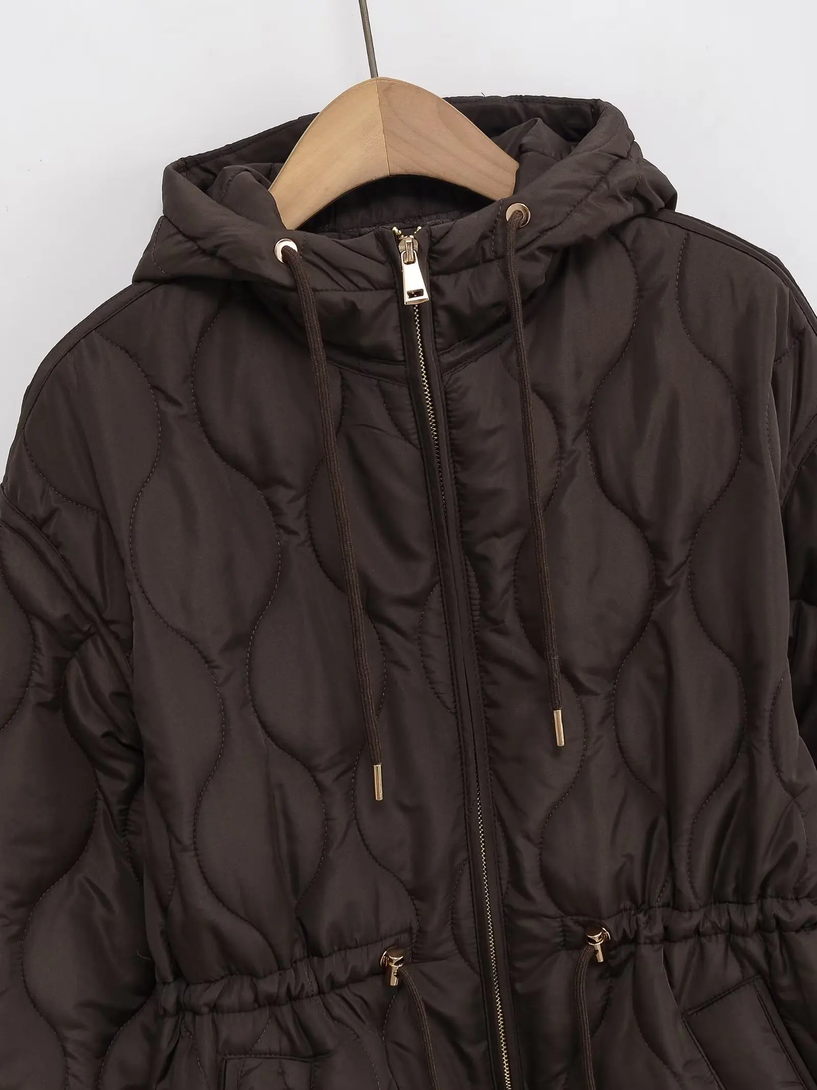 Autumn Winter Women Vintage Padding Parka Coat Waist Lace-up Hooded Jacket Coats 2025 New Fashion Female Casual Loose Outerwear