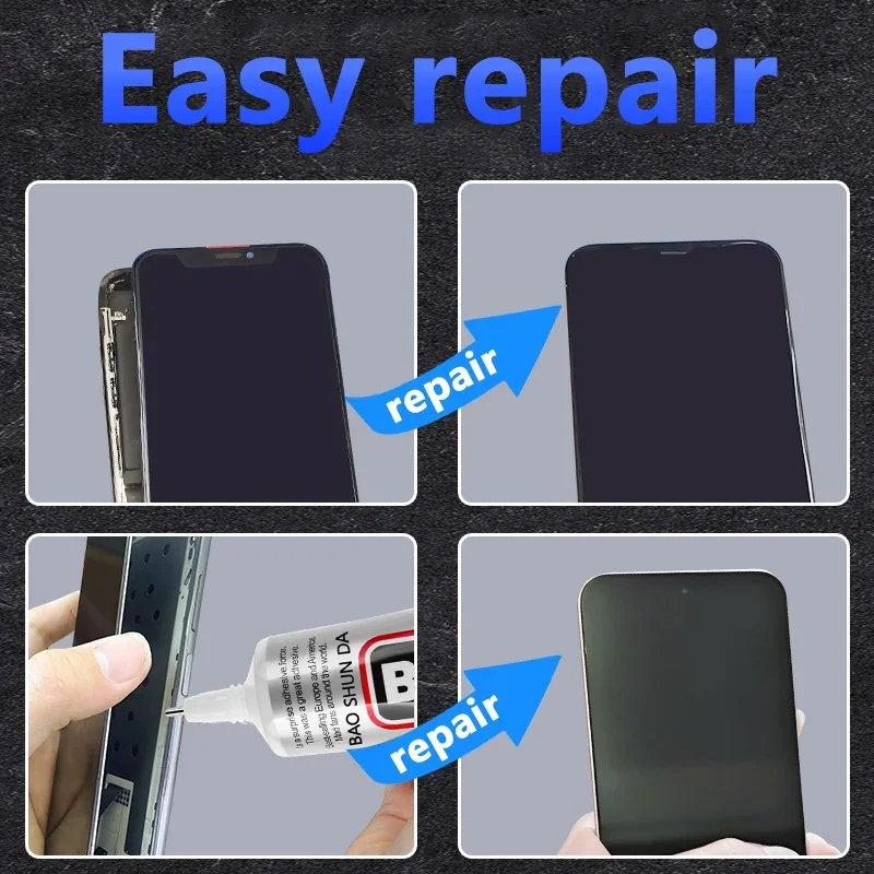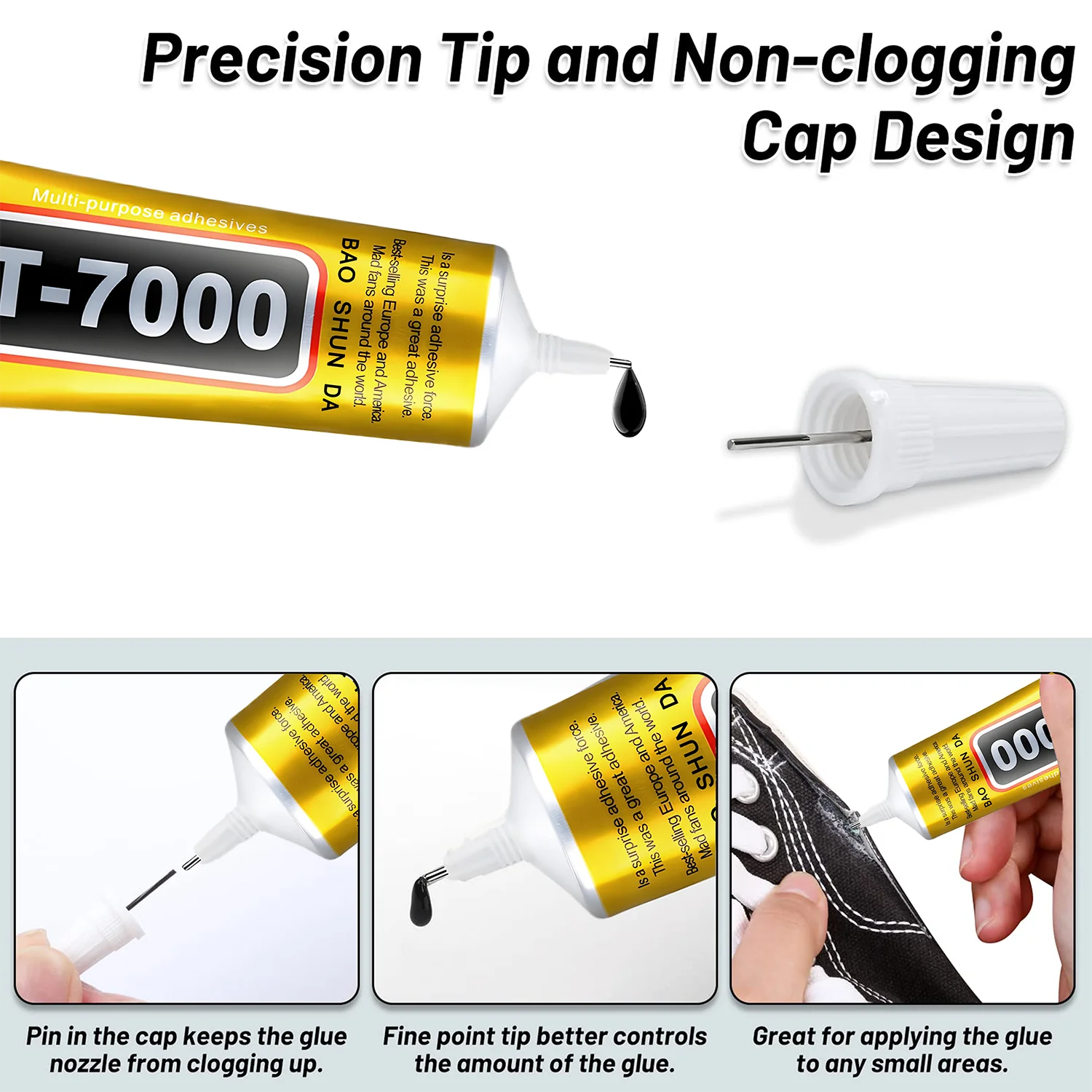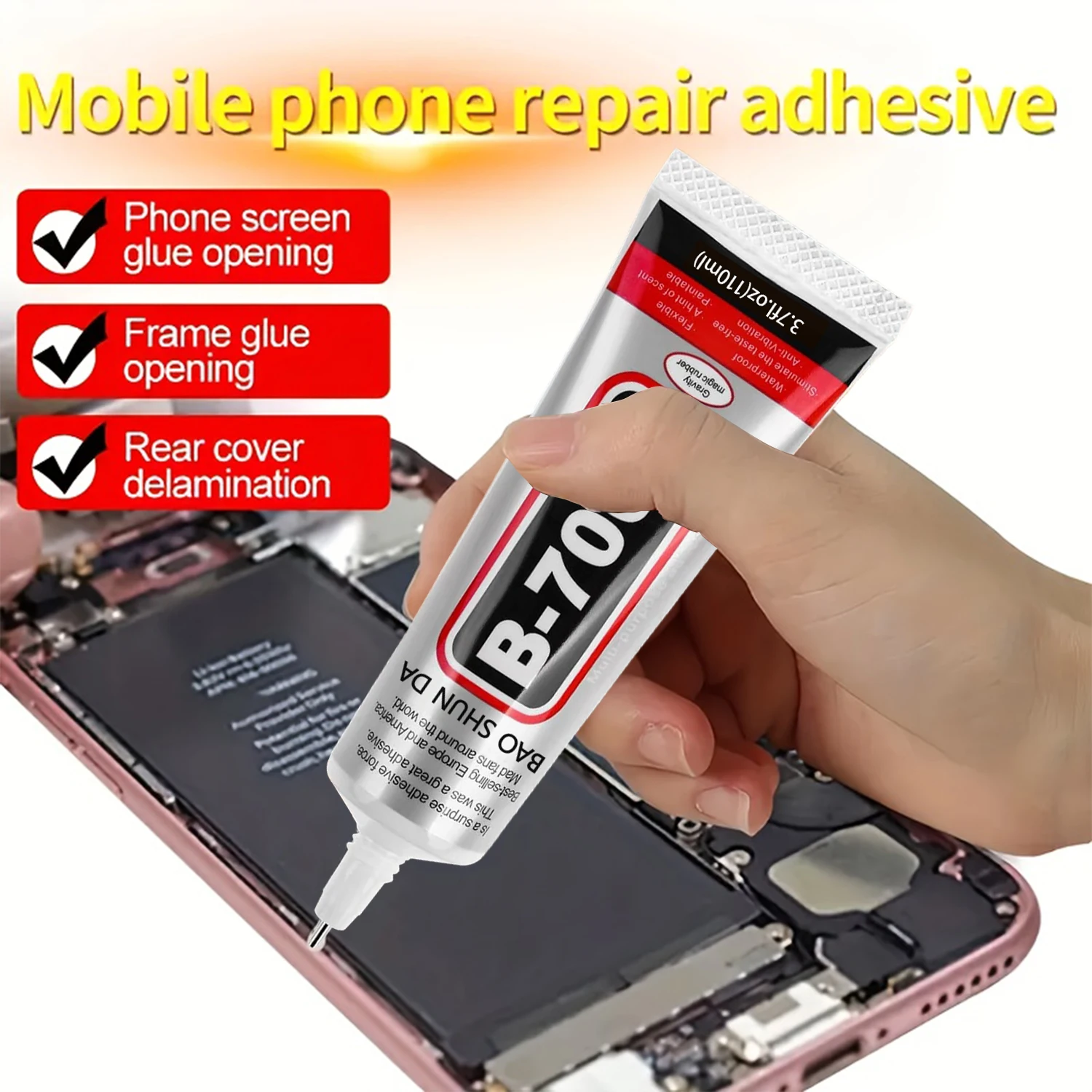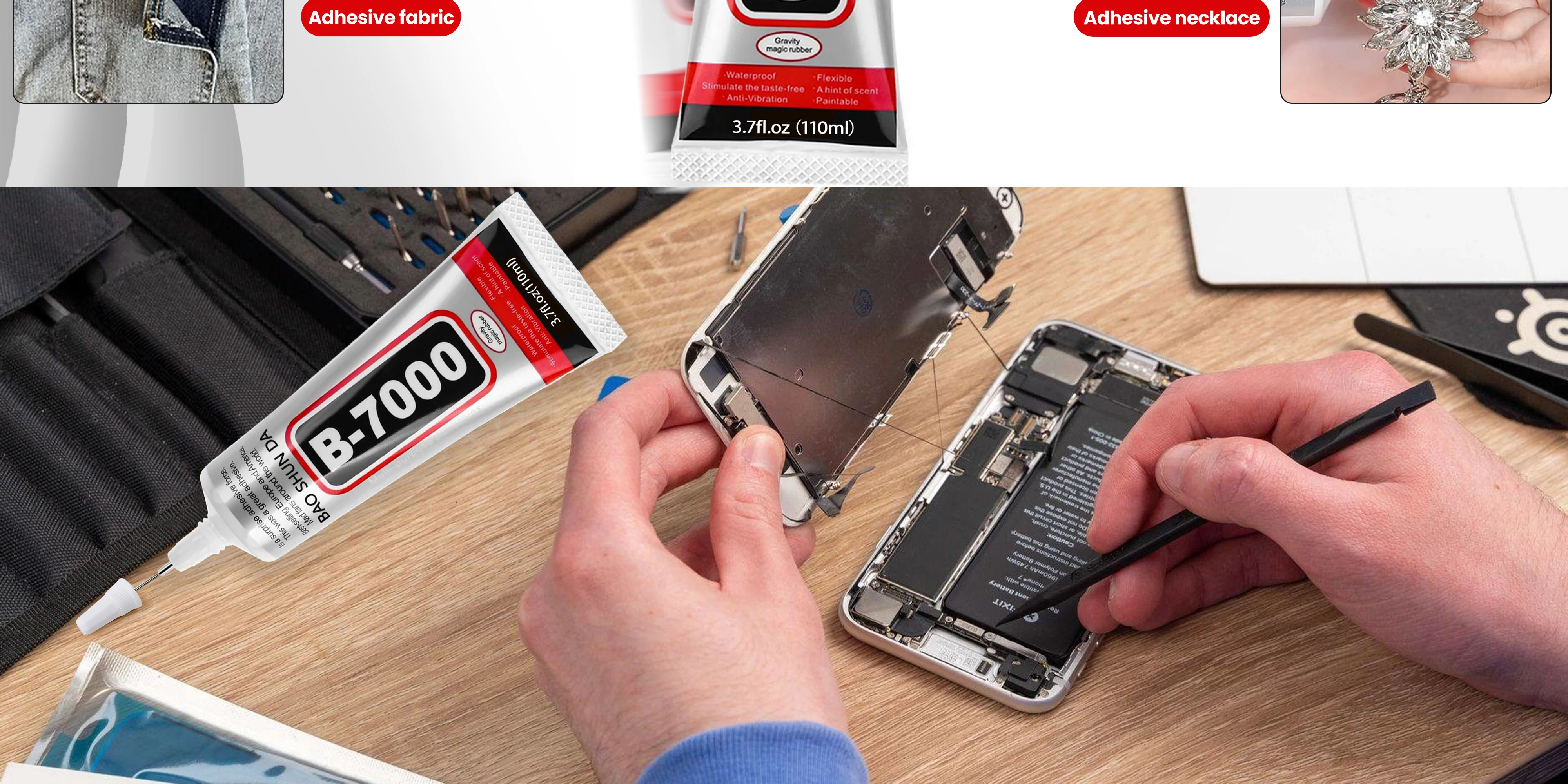1.B7000 Cell Phone Glue: Can be used for cell phones, tablets, electronic products (such as watches, Bluetooth headphones), jewelry, toys, metal, plastic, glass, rubber, fiber, paper, ceramics, wood, cloth, fabric, nylon, PVC, leather, glass, crafts and other materials.