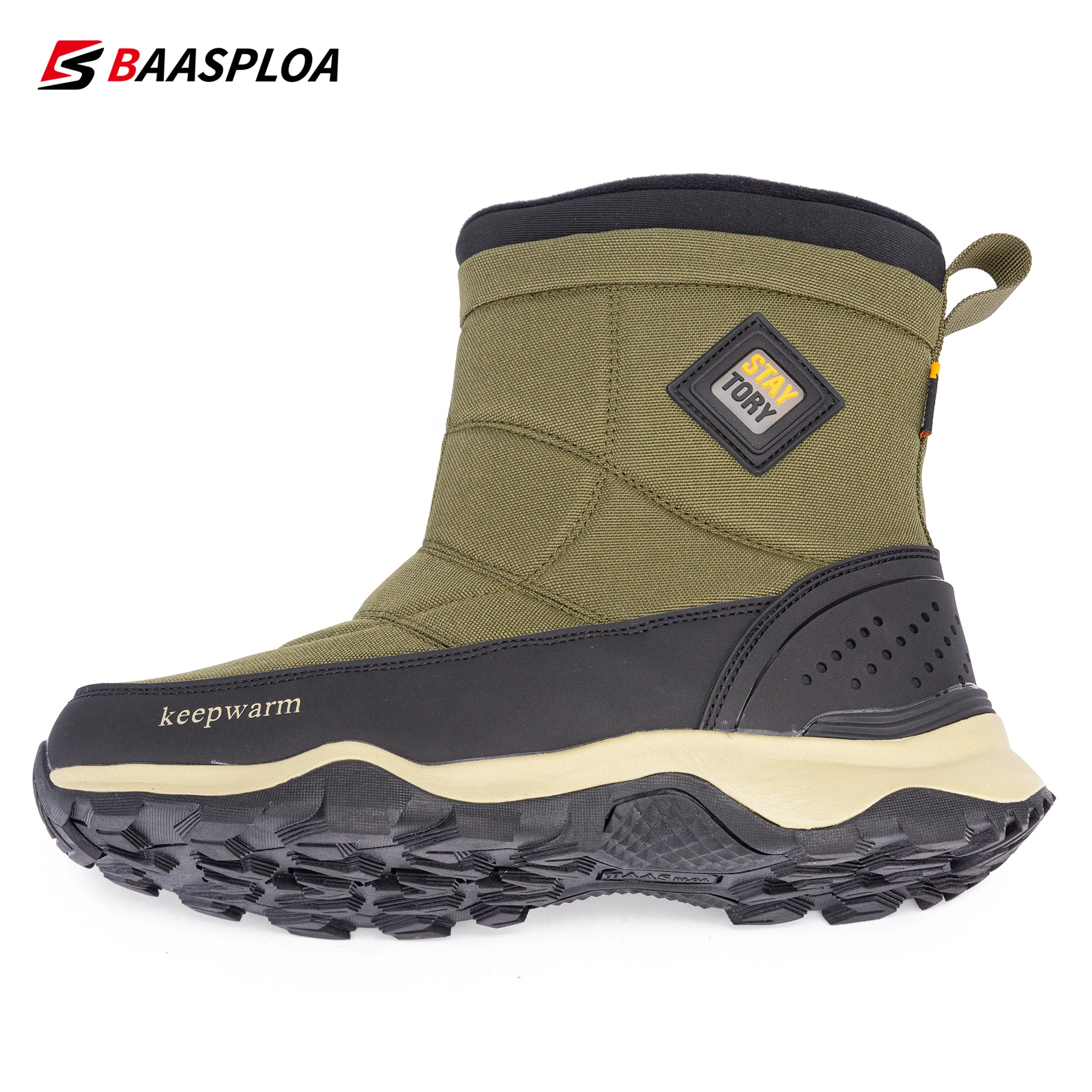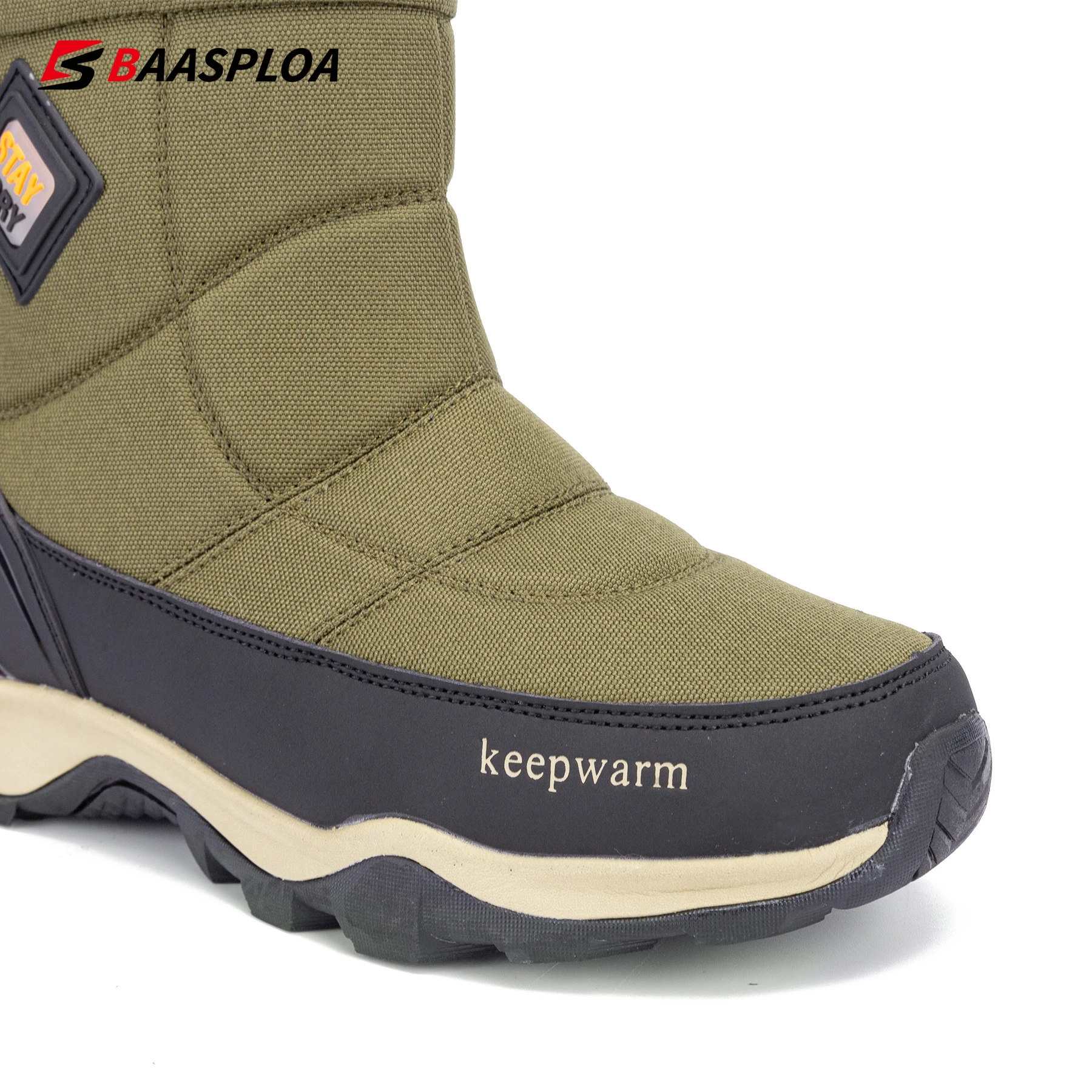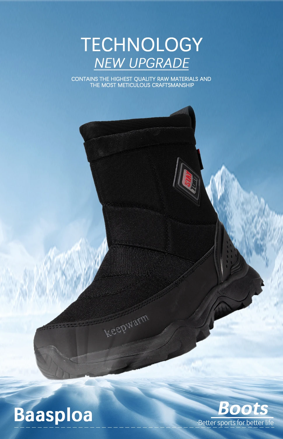 Baasploa 2023 New Winter Warm Men’s Shoes Waterproof Leather Cotton Snow Boot Non-slip Thick Bottom Male Walking Hiking Shoes
