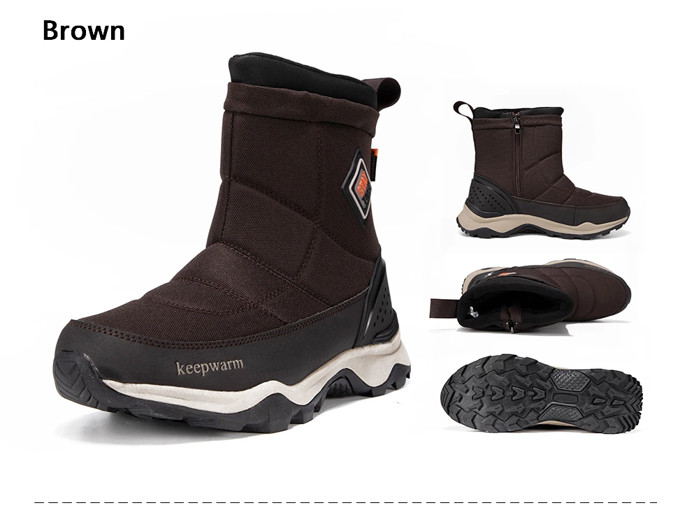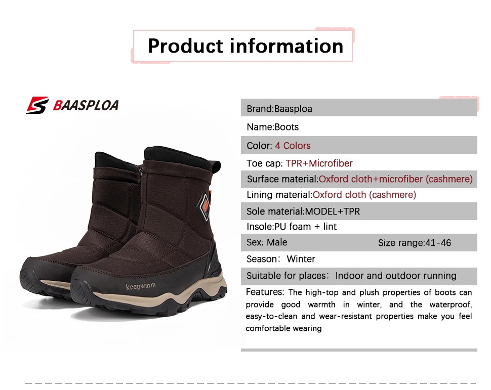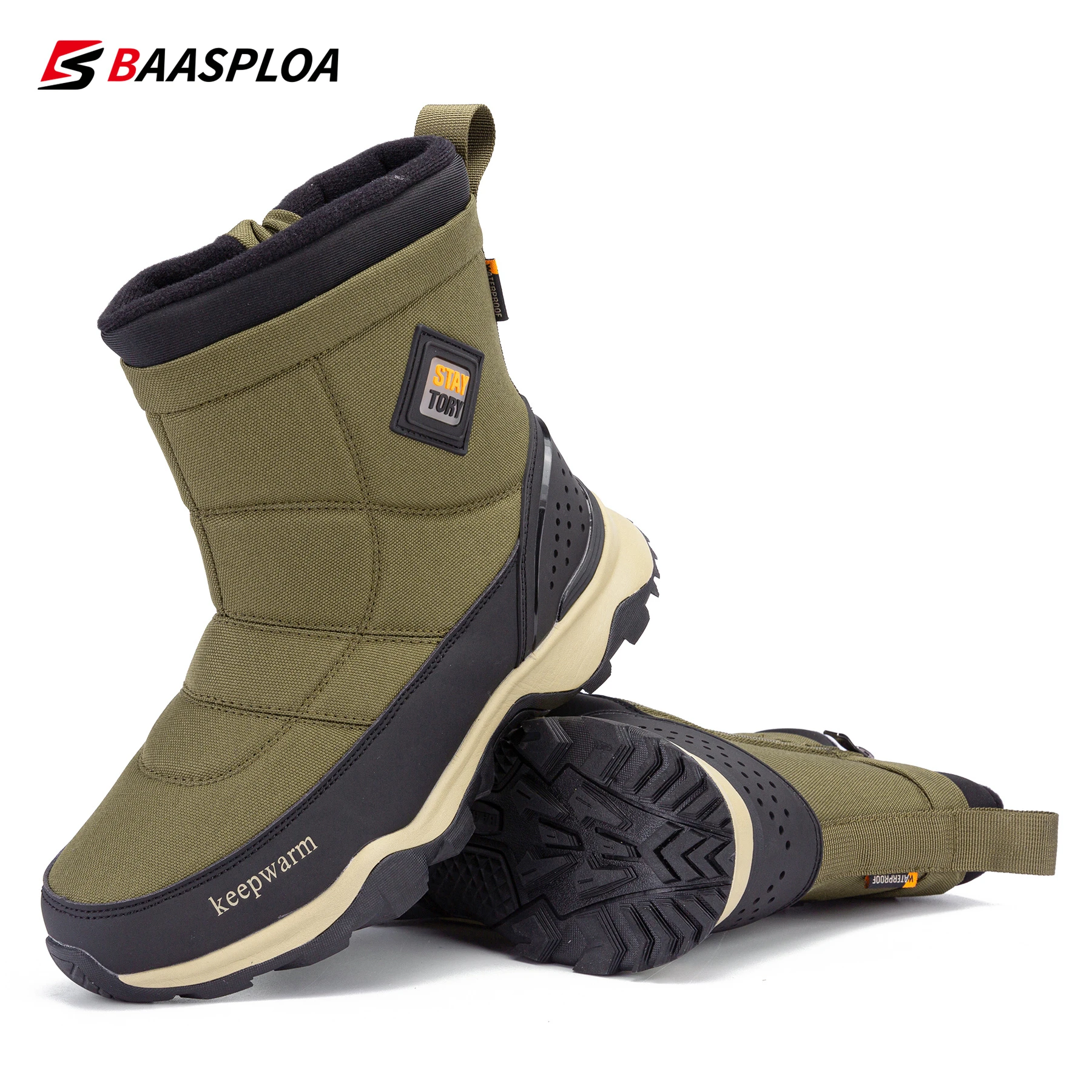 Baasploa 2023 New Winter Warm Men’s Shoes Waterproof Leather Cotton Snow Boot Non-slip Thick Bottom Male Walking Hiking Shoes