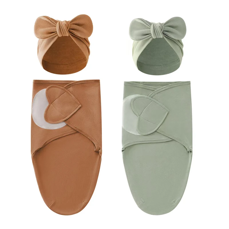 Baby Blanket Hat Set Cartoon Printed Cotton Newborn Swaddle Adjustable Infant Sleeping Swaddle Wraps All Seasons 0-6 Months