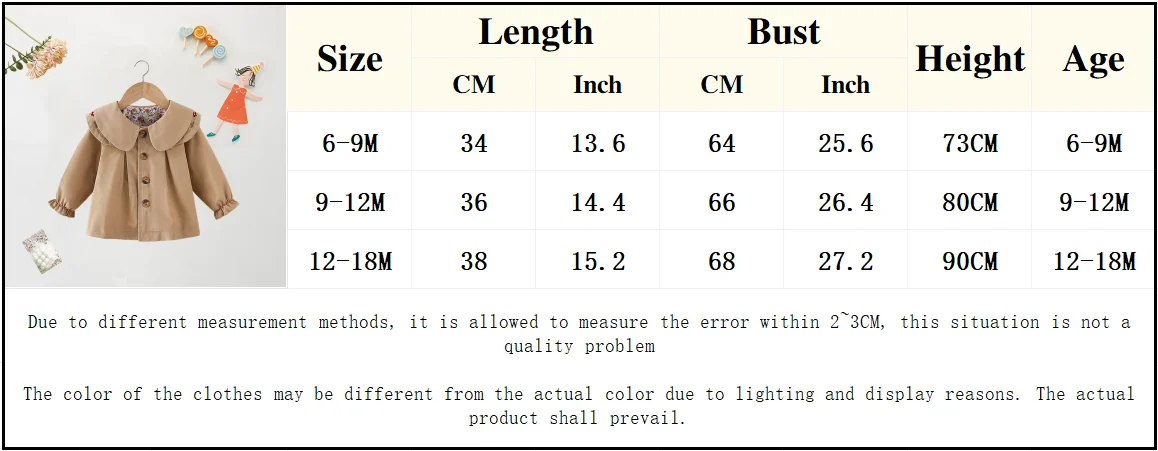 Be the first to review “Baby Girl Clothes Spring and Autumn Baby Girl Solid Color Casual Windbreaker Big Collar Single breasted Cute Coat”