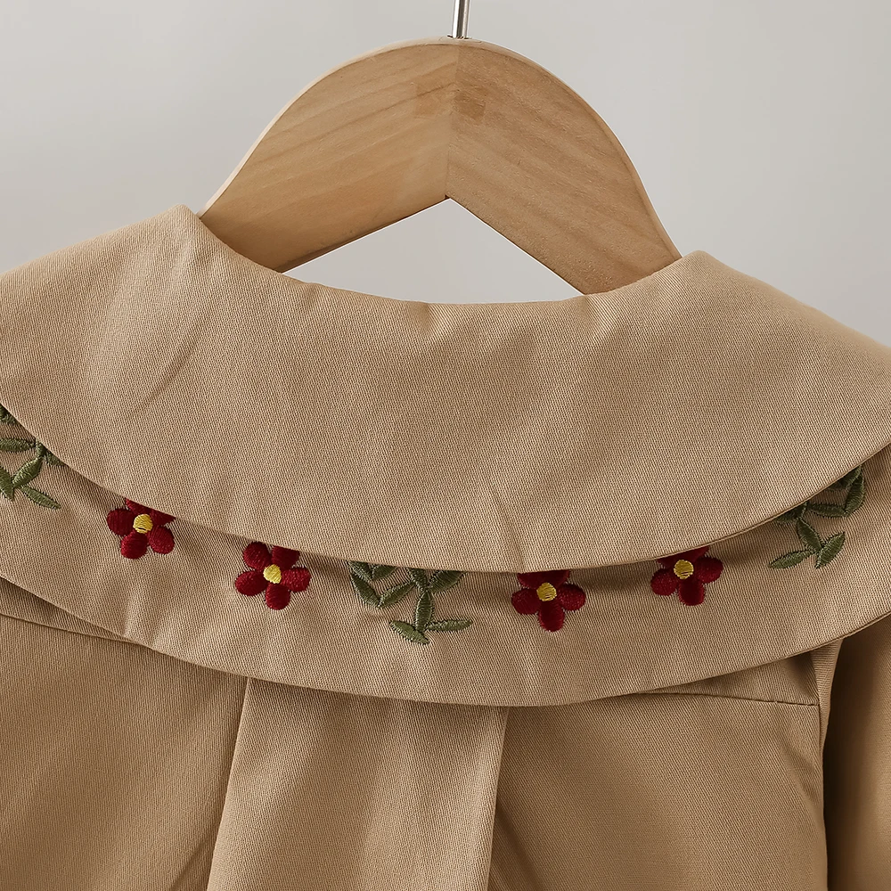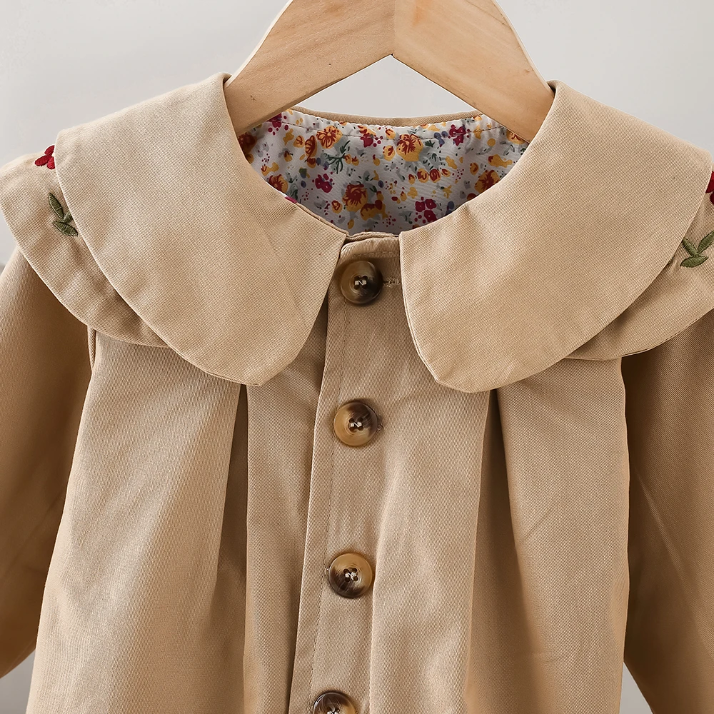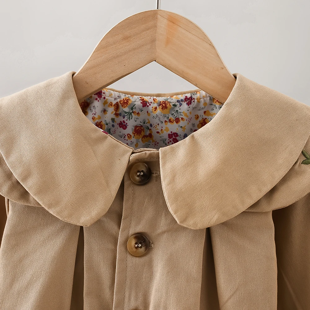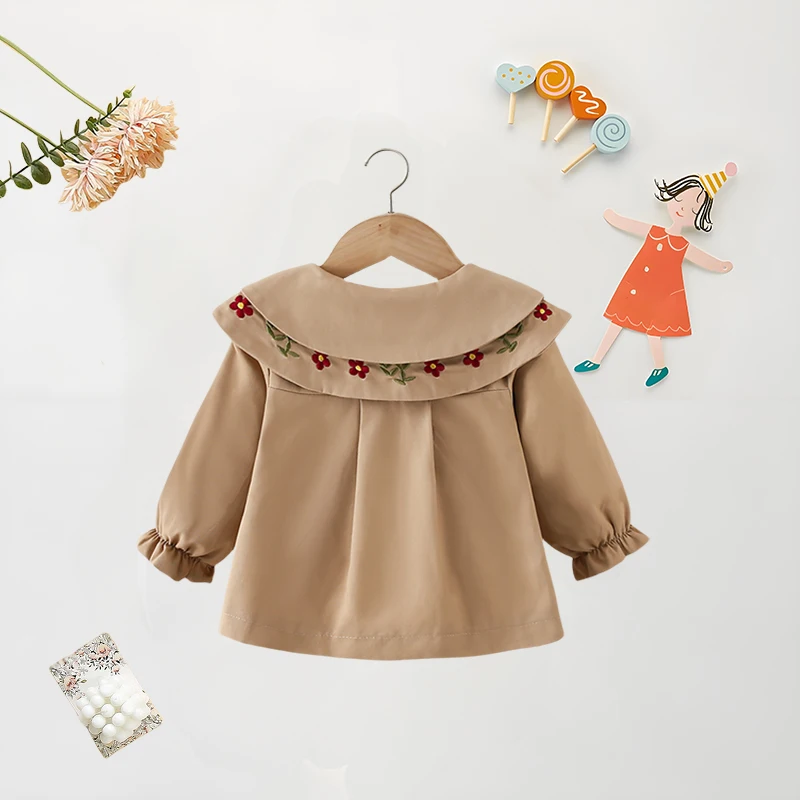 Baby Girl Clothes Spring and Autumn Baby Girl Solid Color Casual Windbreaker Big Collar Single breasted Cute Coat