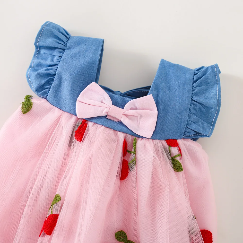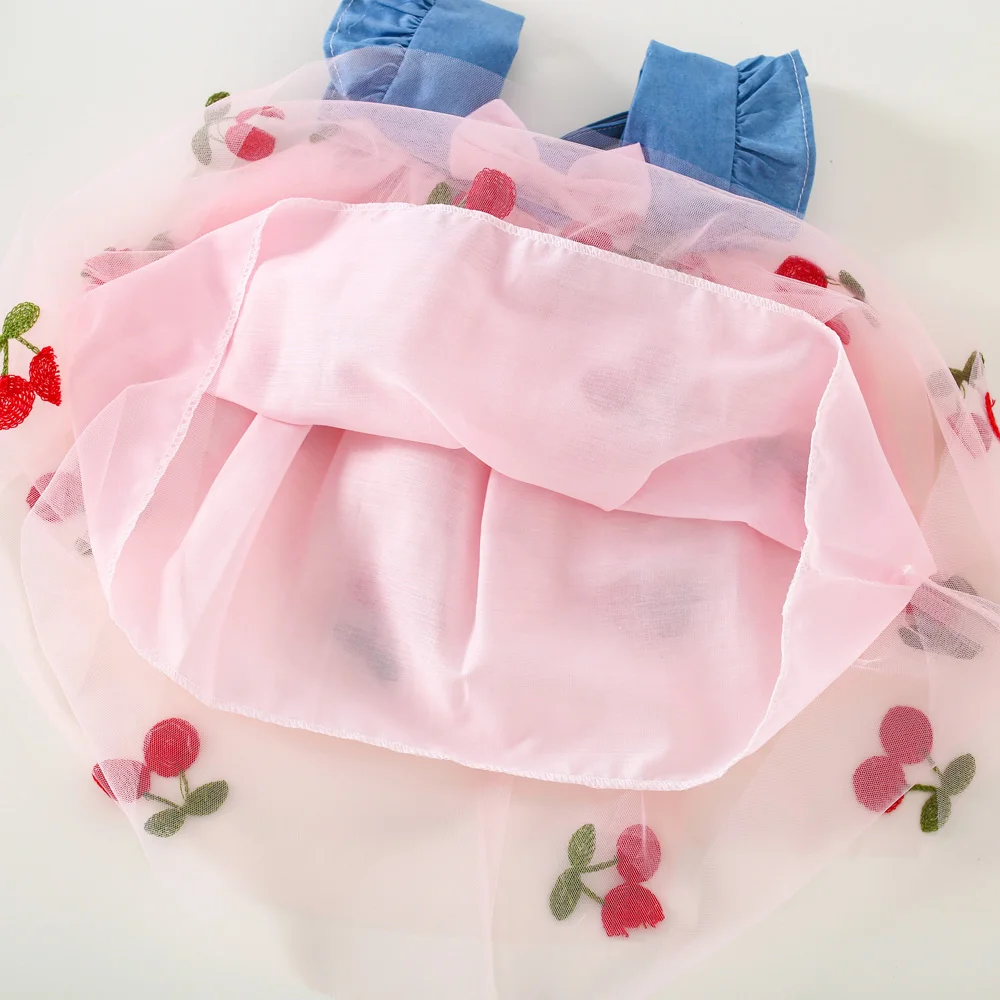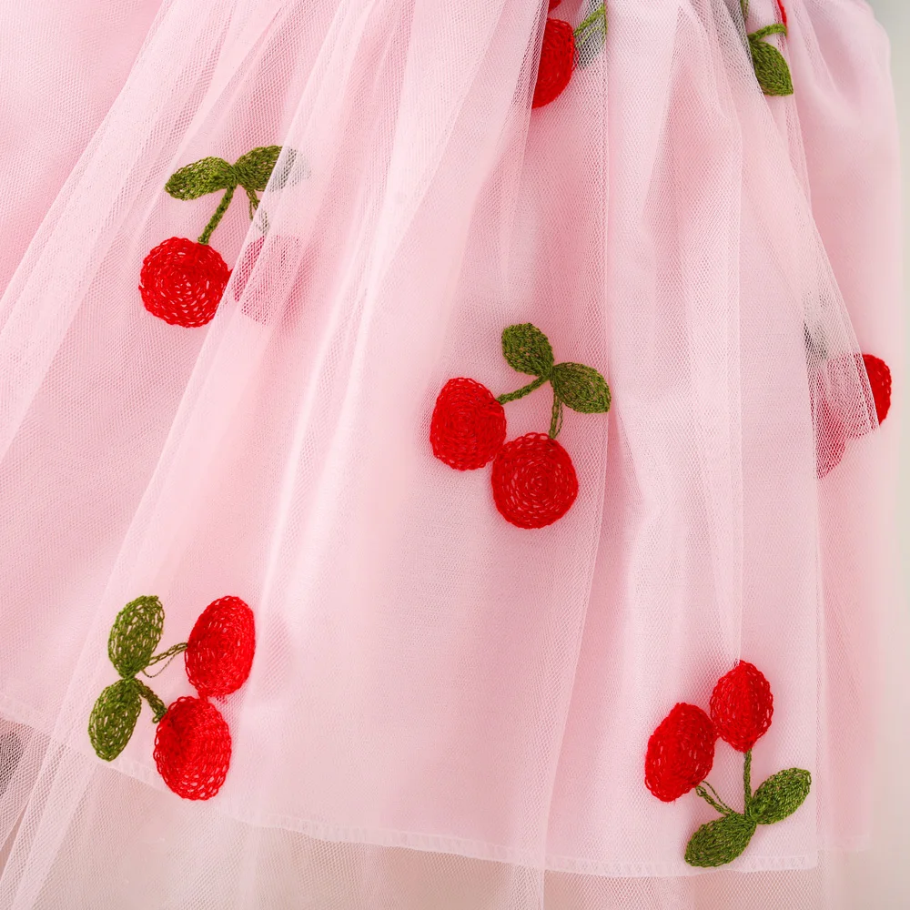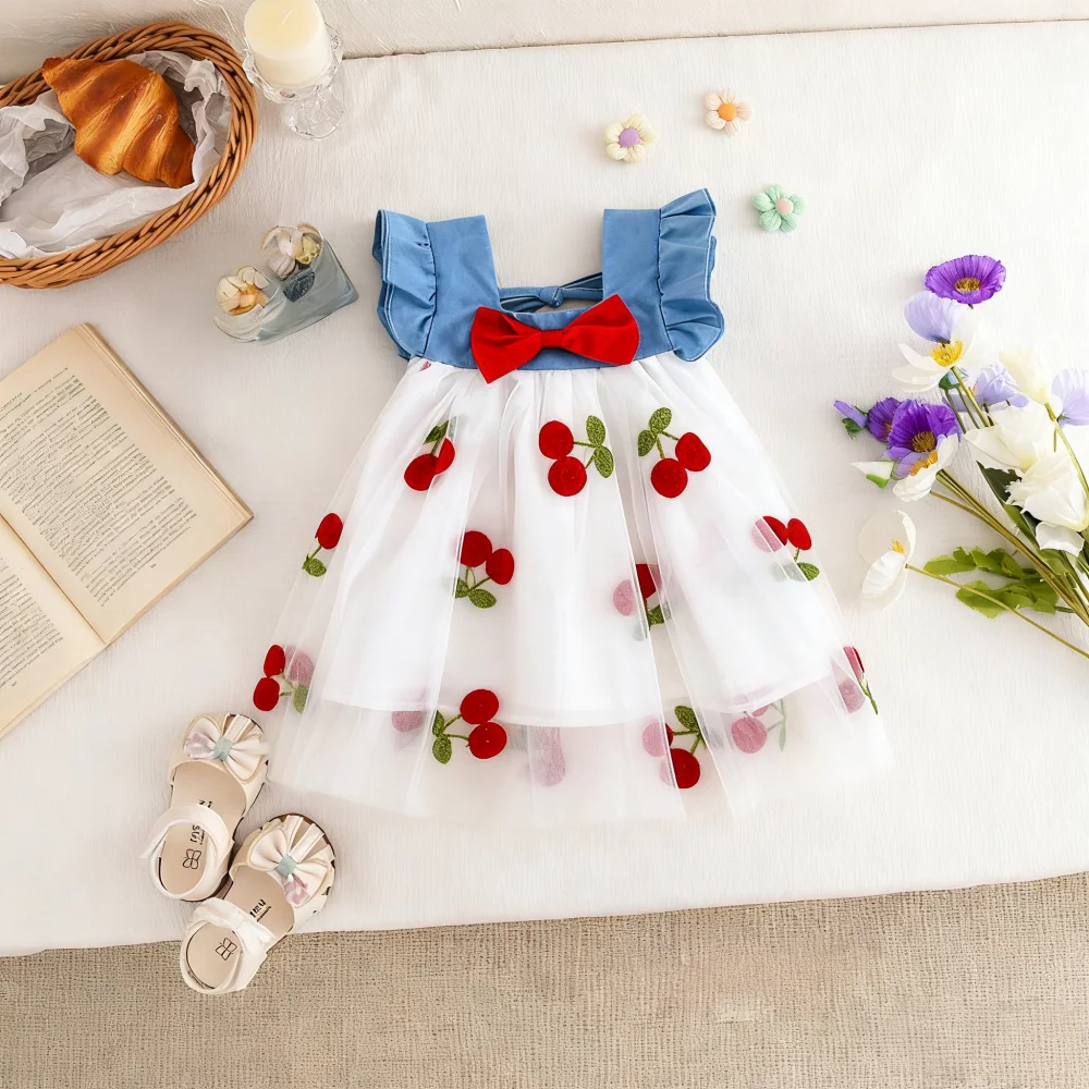 Baby Girl Dress Summer Lace Cherry Short Puff Sleeve Baby Dress Adorable Butterfly Wedding Flower Girl Dress Baby Girl Clothing
