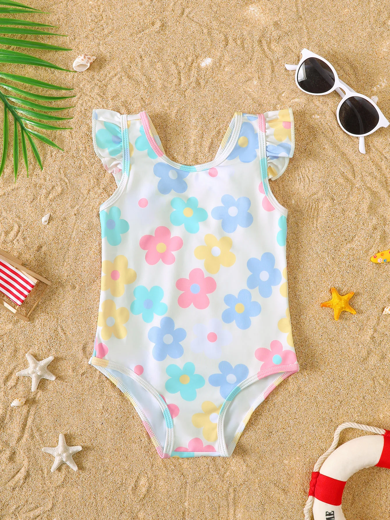 Baby Girl Summer Cute Colorful Flower Print Sleeveless Romper Swimsuit Infant Swimwear