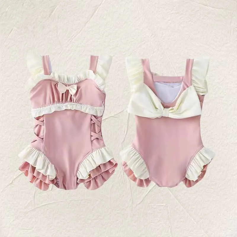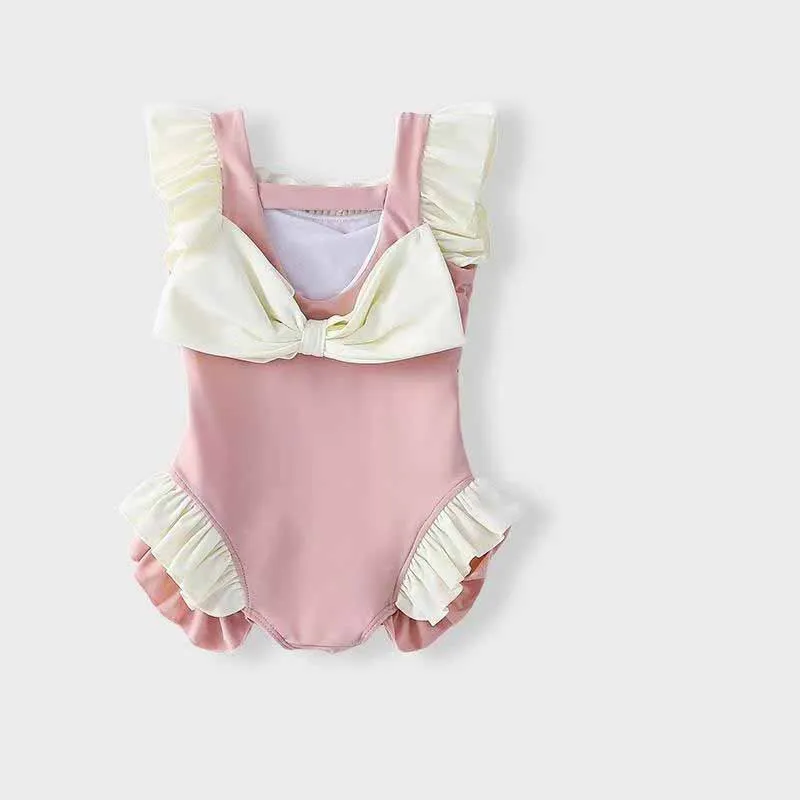 Baby Girl Swimsuit Children Fashion Bikini Summer New One Piece Swimwear Kids Bowknot Swim Clothes Casual Sweet Beachwear