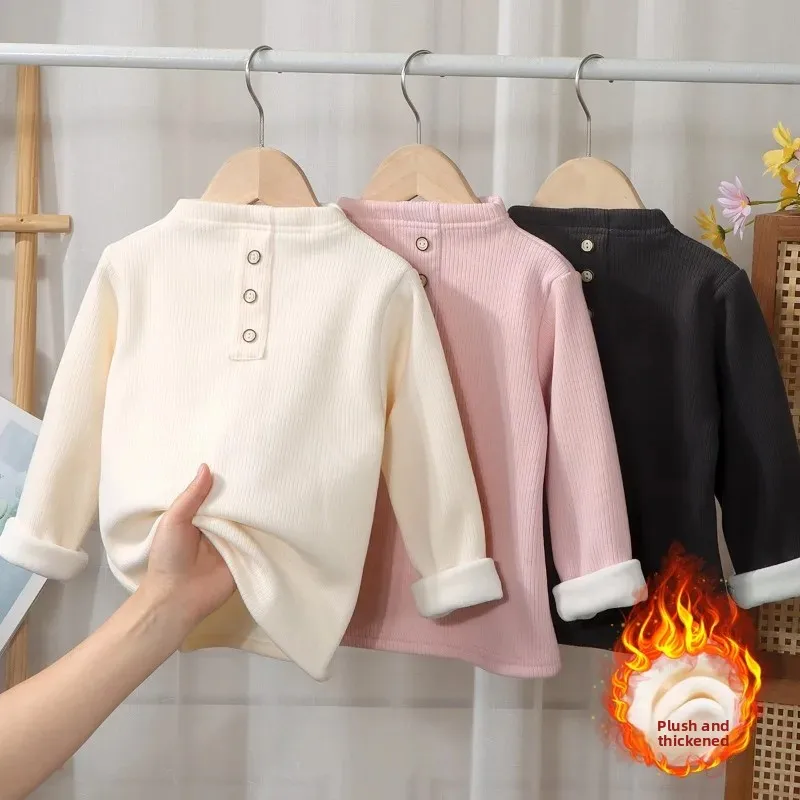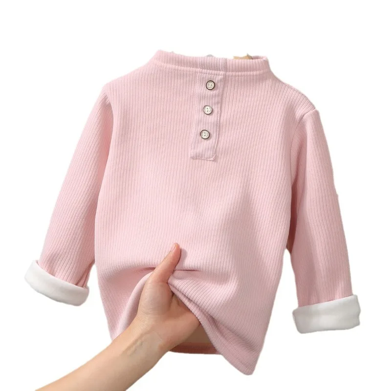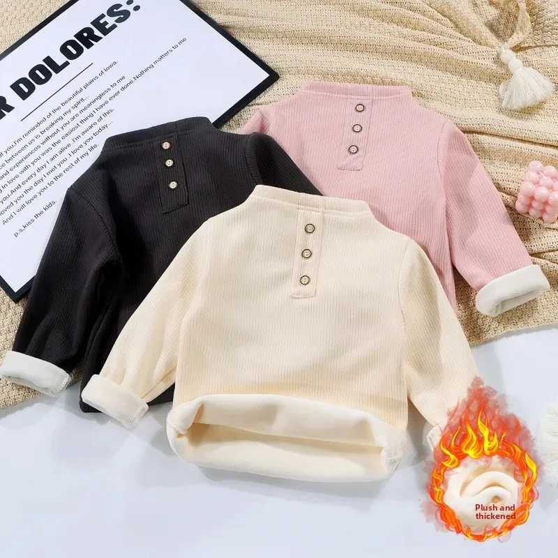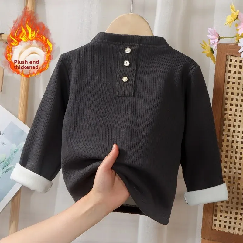 ‌Baby Girls Boys Fleece Lined Bodysuit Winter Thickened Half Neck Thermal Undershirt Pure Color Warm Base Layer Infant Toddler‌