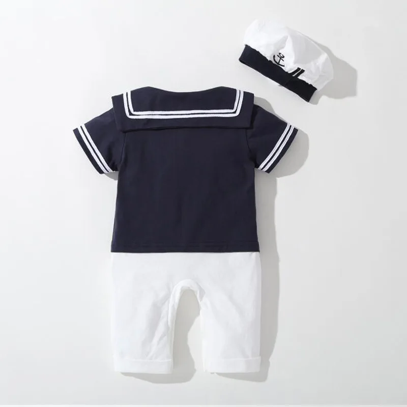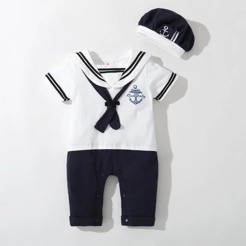 Baby Navy Romper Summer Newborn Kids Boys Girls Sailor Jumpsuit Hat 2Pcs Body Short Sleeve Anchor Printed Suit