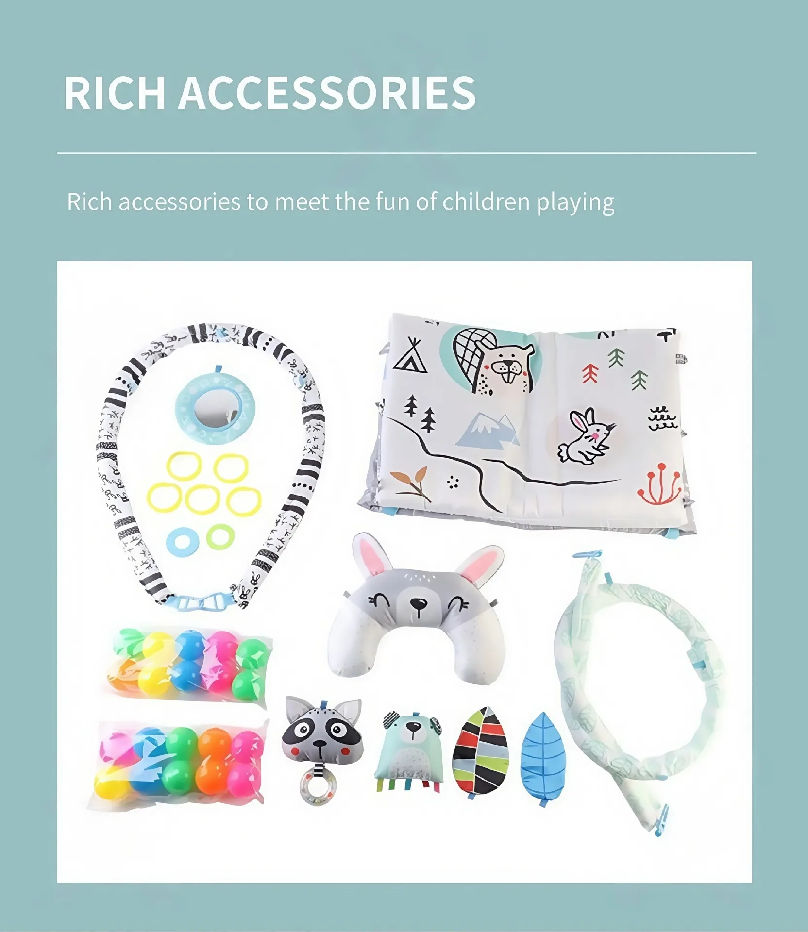 Easy to Carry: The baby gym mat can be easily set up and disassembled with no tools required. Ideal companion for family trips, visits to grandparents, or even park outings, ensuring your baby always has a familiar, fun play space wherever you go