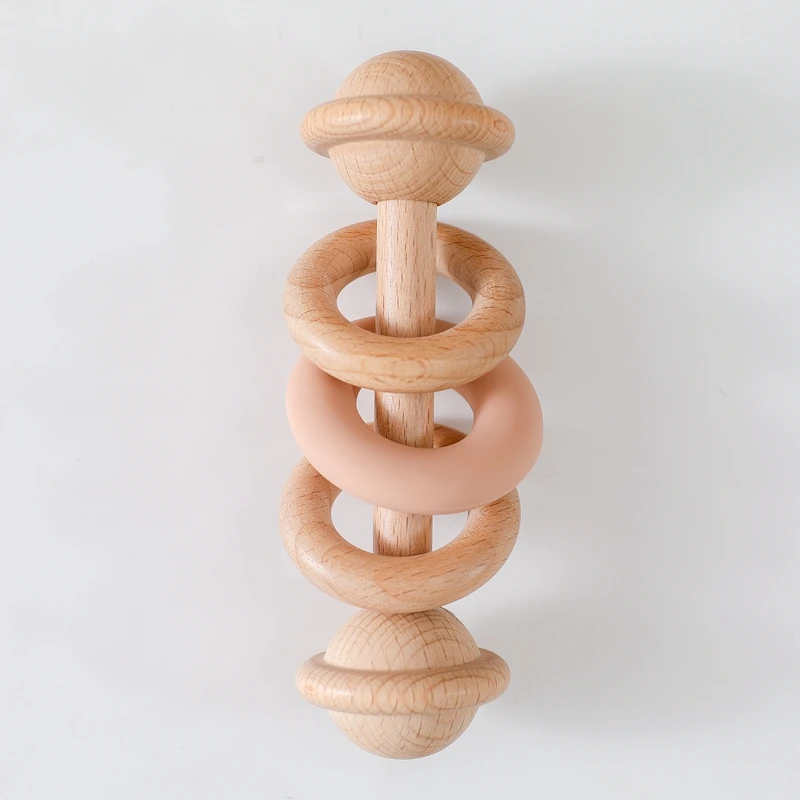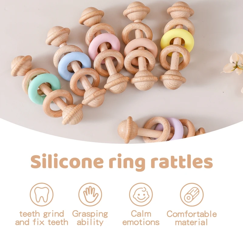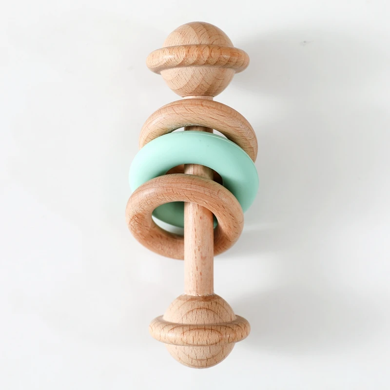 【Safe Materials】The size and weight of this wooden baby rattle are specifically designed for infants. Crafted from natural beech wood, its edges are smoothly sanded without splinters and are BPA-free.