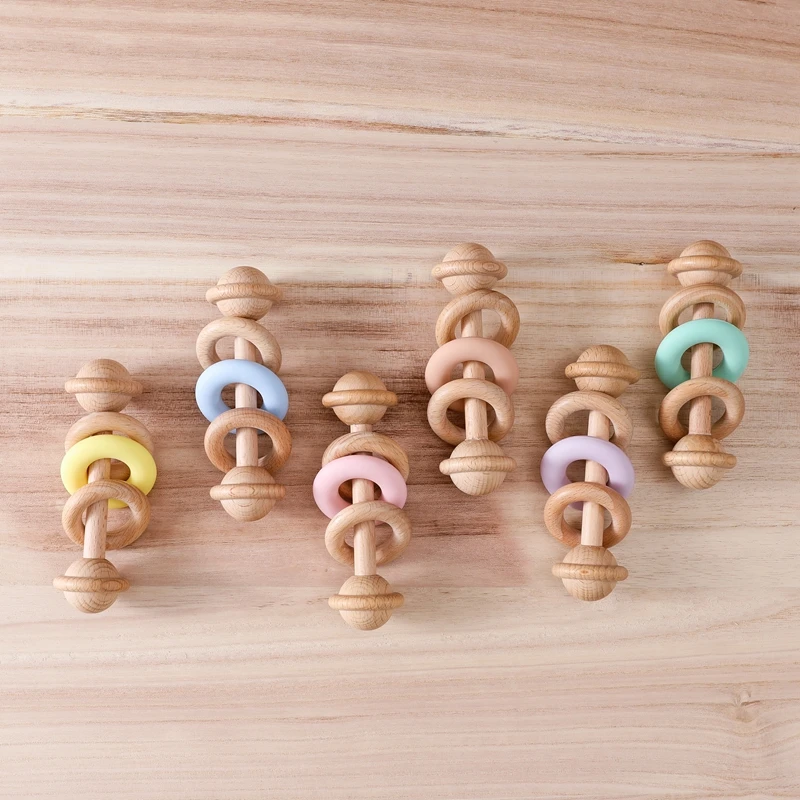 Baby Toys Wooden Rattles Silicone Ring Baby Rattles and Mobiles 0 12 Months Sensory Toys for Baby Wooden Teether for Baby Gifts