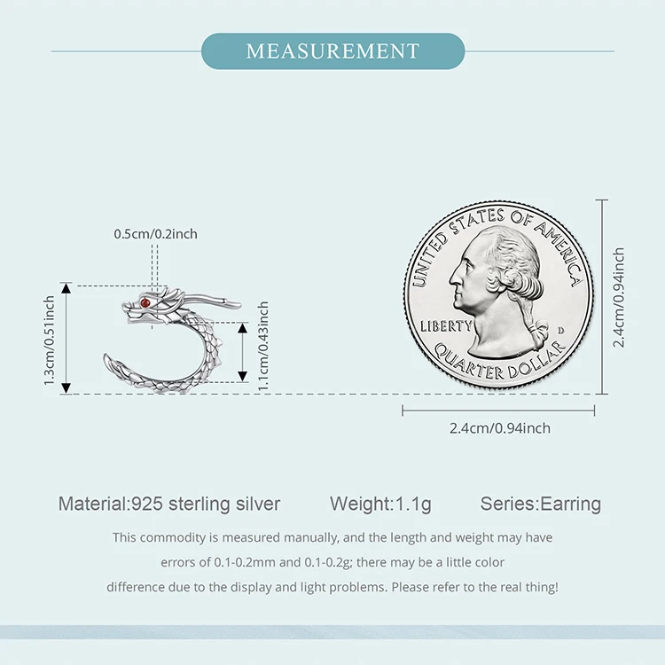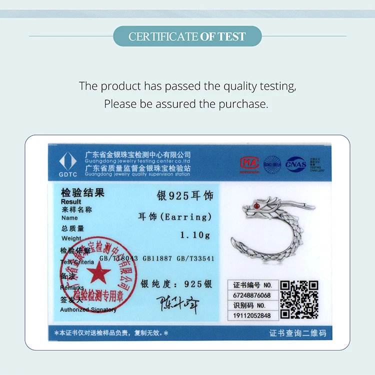• Certificate Number: Original 925 Sterling Silver Dragon Ear Clip GXE999-A