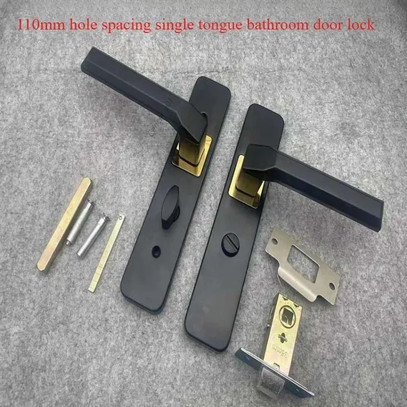 Bathroom Door Lock Keyless and Lockable Toilet Door Lock 110 Hole Single Tongue Handle Lock Black