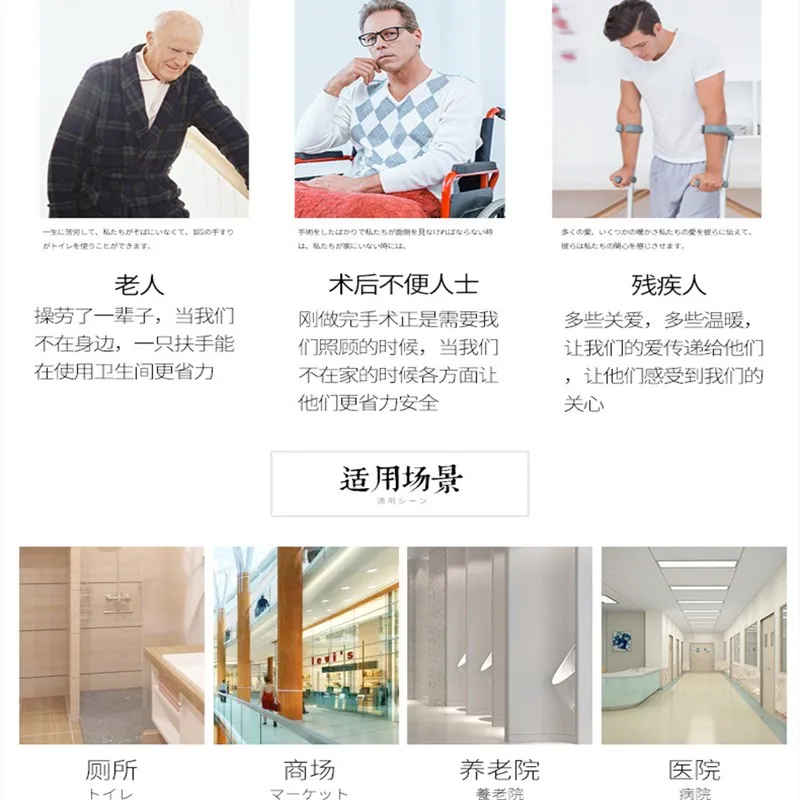 2. Bathroom safety handrails are suitable for bathrooms, toilets, corridors and stairs in public places such as apartments, hotels, nursing homes and shopping malls. Provide a safe living environment for the people around you.