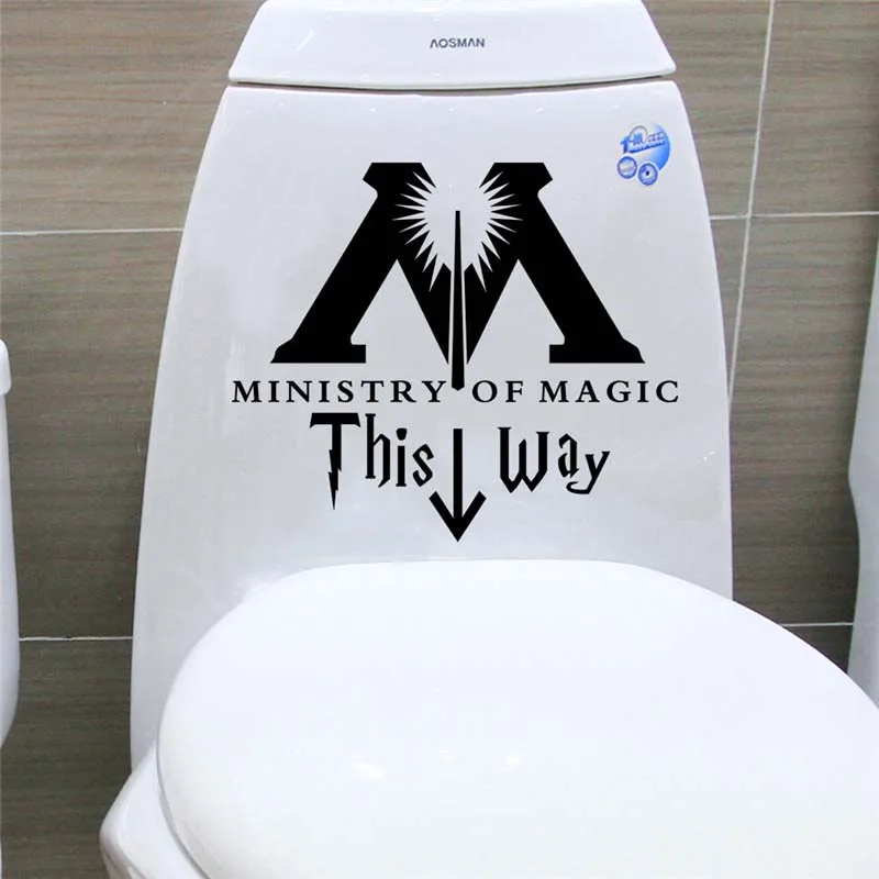 Bathroom Toilet Wall Stickers MINISTRY OF MAGIC THIS WAY Washroom Art Mural Home Decor Waterproof Wallpaper Vinyl Wall Decals